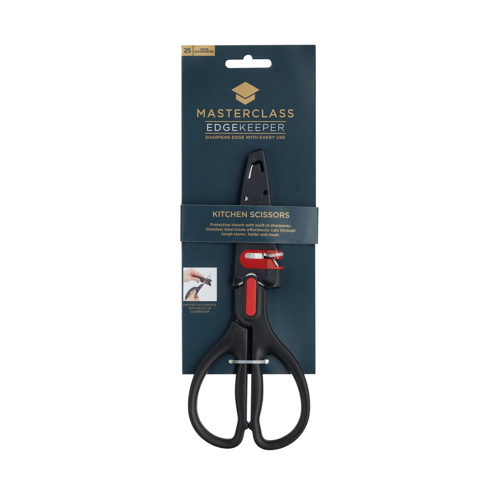 Questa forbice multiuso con robuste lame in acciaio inossidabile della gamma Master Class è dotata di una guaina protettiva che utilizza la tecnologia brevettata Edgekeeper. L'affilatoio incorporato sul lato della guaina protettiva manterrà entrambe le lame affilate in modo da avere sempre la forbice pronta per l'uso.