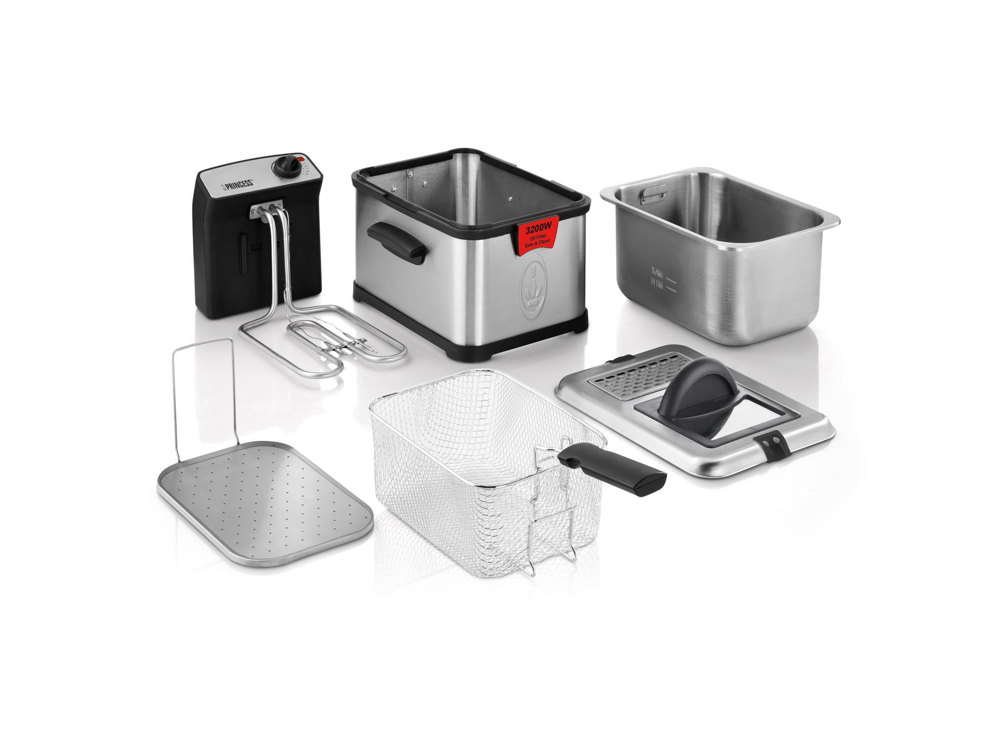 La friggitrice Superior del marchio Princess è l'elettrodomestico ideale se desideri un piatto come il "fish&chips" il prima possibile. In soli 5 minuti l'olio sarà caldo, grazie alla sua straordinaria potenza di 3200 W. Non dovrai preoccuparti dei piccoli pezzi di cibo che si bruciano, grazie alla tecnologia "cool zone" e all'innovativo filtro protettivo che evita schizzi di olio bollente o cibi cotti bruciati. Il filtro può essere utilizzato anche per mantenere l'olio pulito più a lungo.