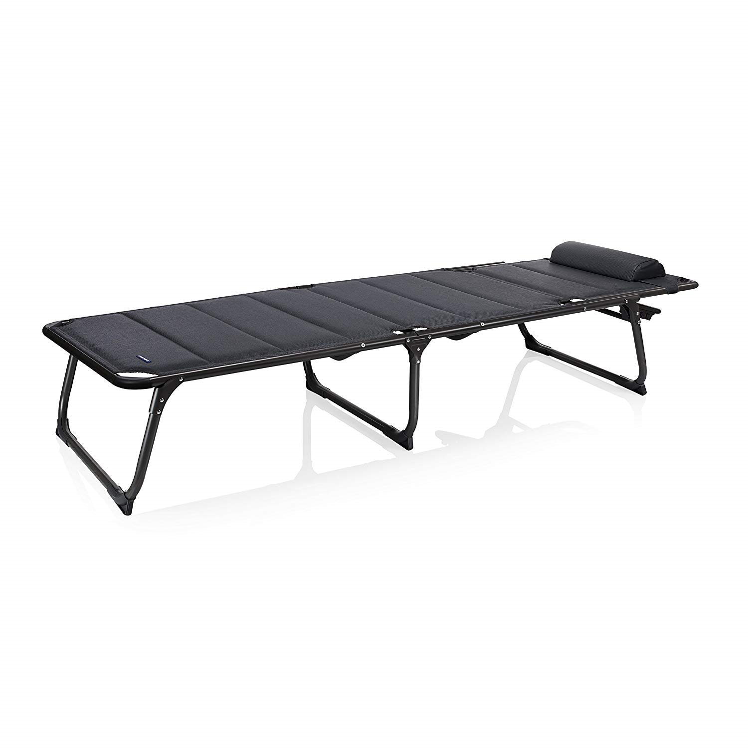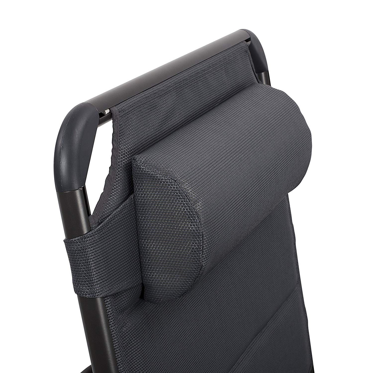 Il lettino ha una larghezza generosa e può sostenere fino a 120 kg. Il lettino è dotato di poggiatesta e l'inclinazione dello schienale è regolabile in 5 diverse posizioni, dalla posizione orizzontale, se si vuole dormire, alla posizione seduta, adatta alla lettura.