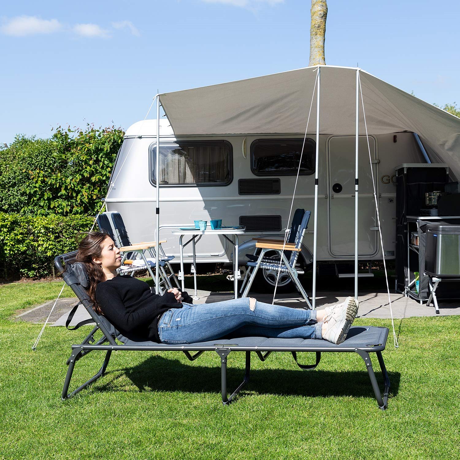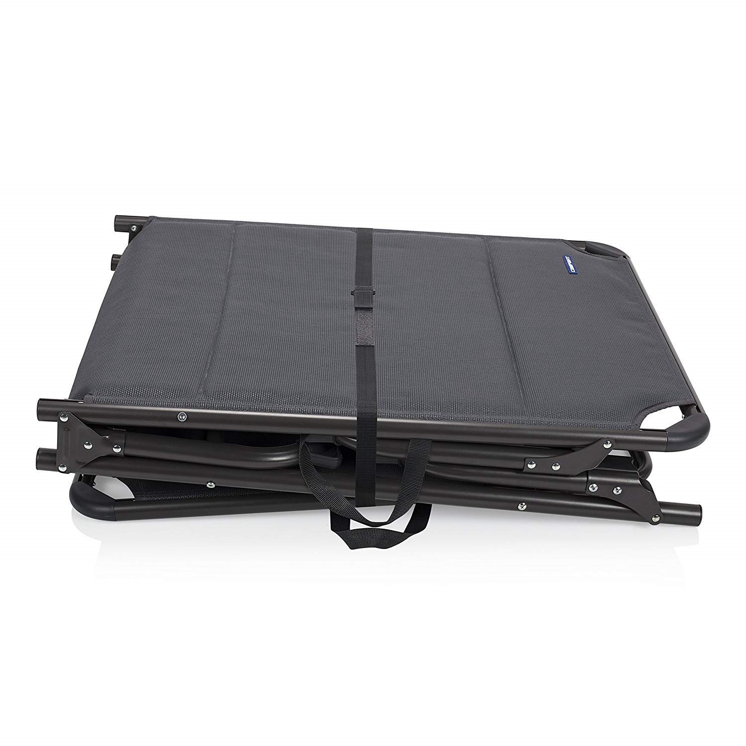 Dato che il lettino è pieghevole, puoi portarlo con te in campeggio o in viaggio. Il materiale tessile è resistente ai raggi UV.