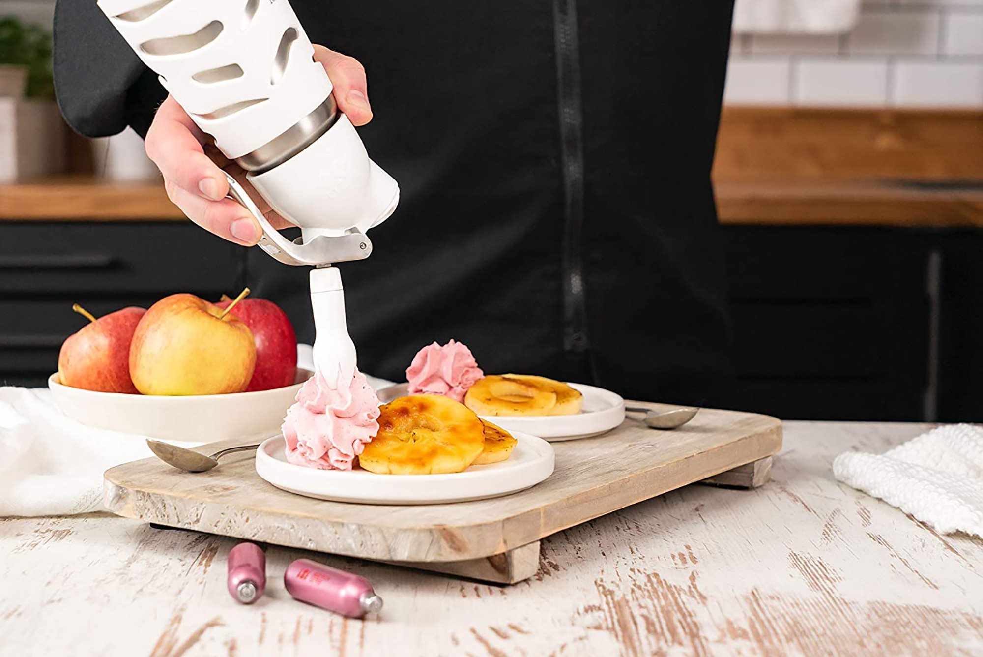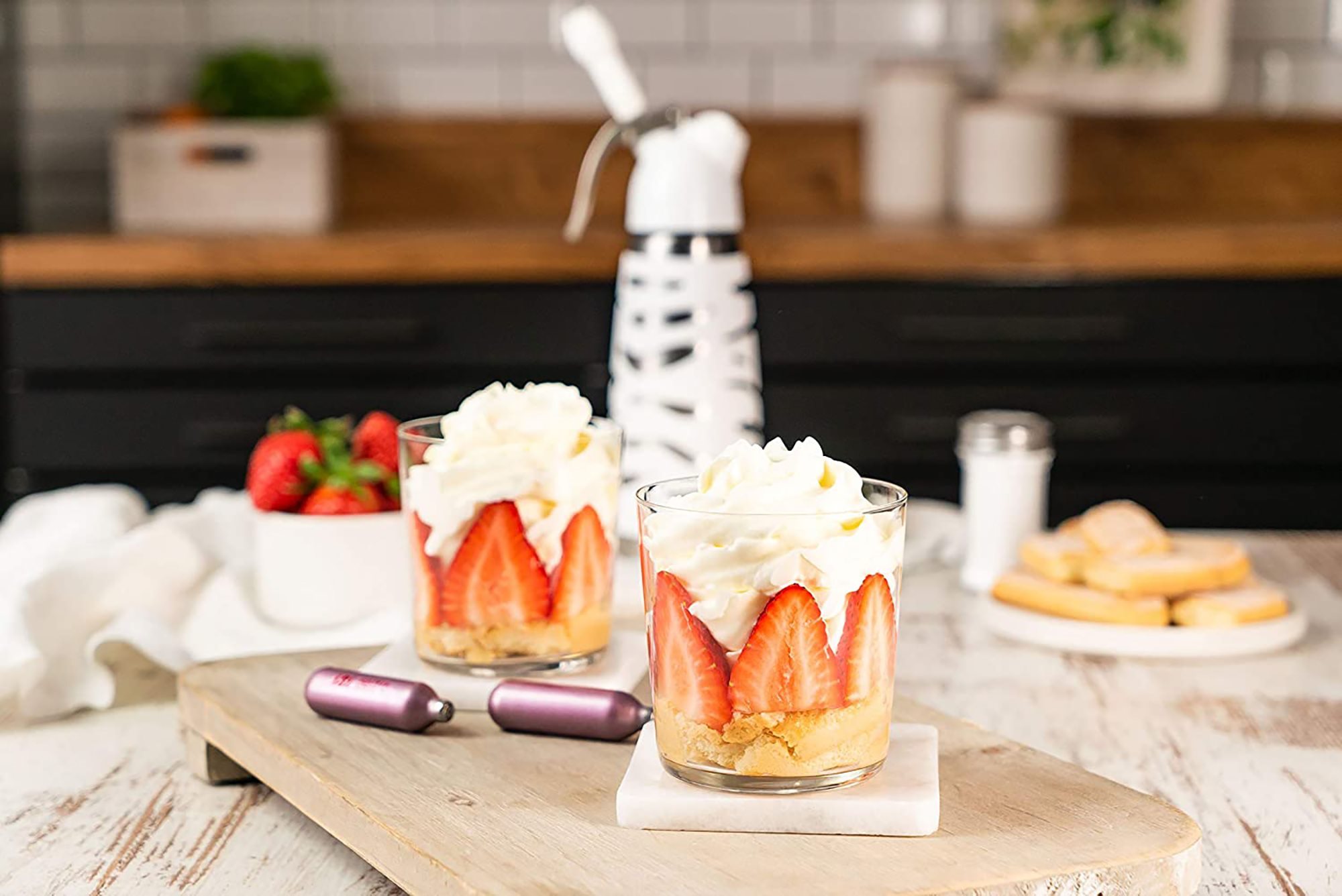 Prepara i tuoi dessert e condimenti preferiti in modo semplice e veloce. Che la preparazione sia dolce o salata, aggiungi il tocco finale a creme, mousse e snack con il sifone per panna montata di iSi.