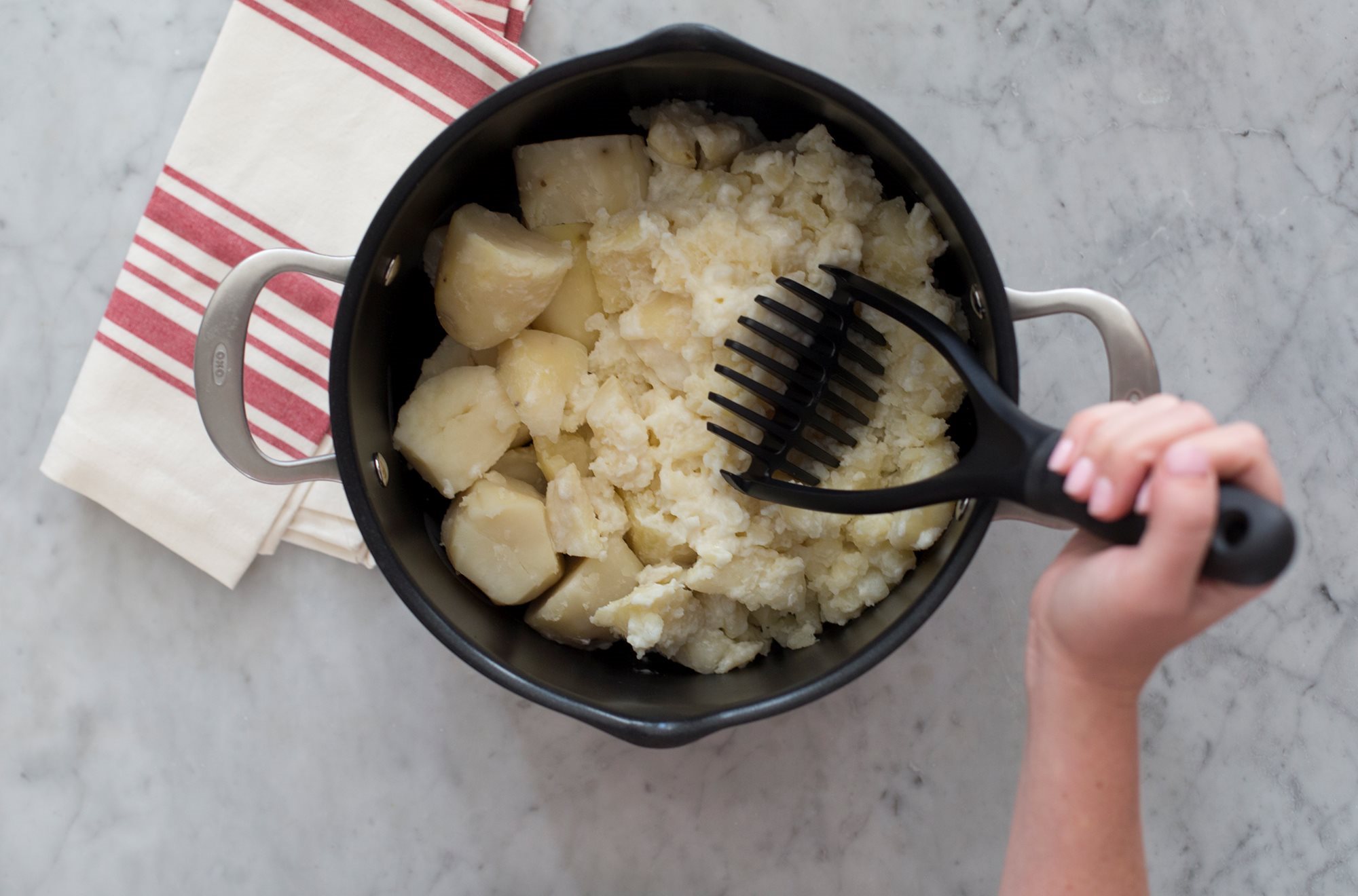 Pressa manuale per patate, marchio OXO, realizzata in nylon, resistente al calore fino a 200 ° C / 400 ° F.