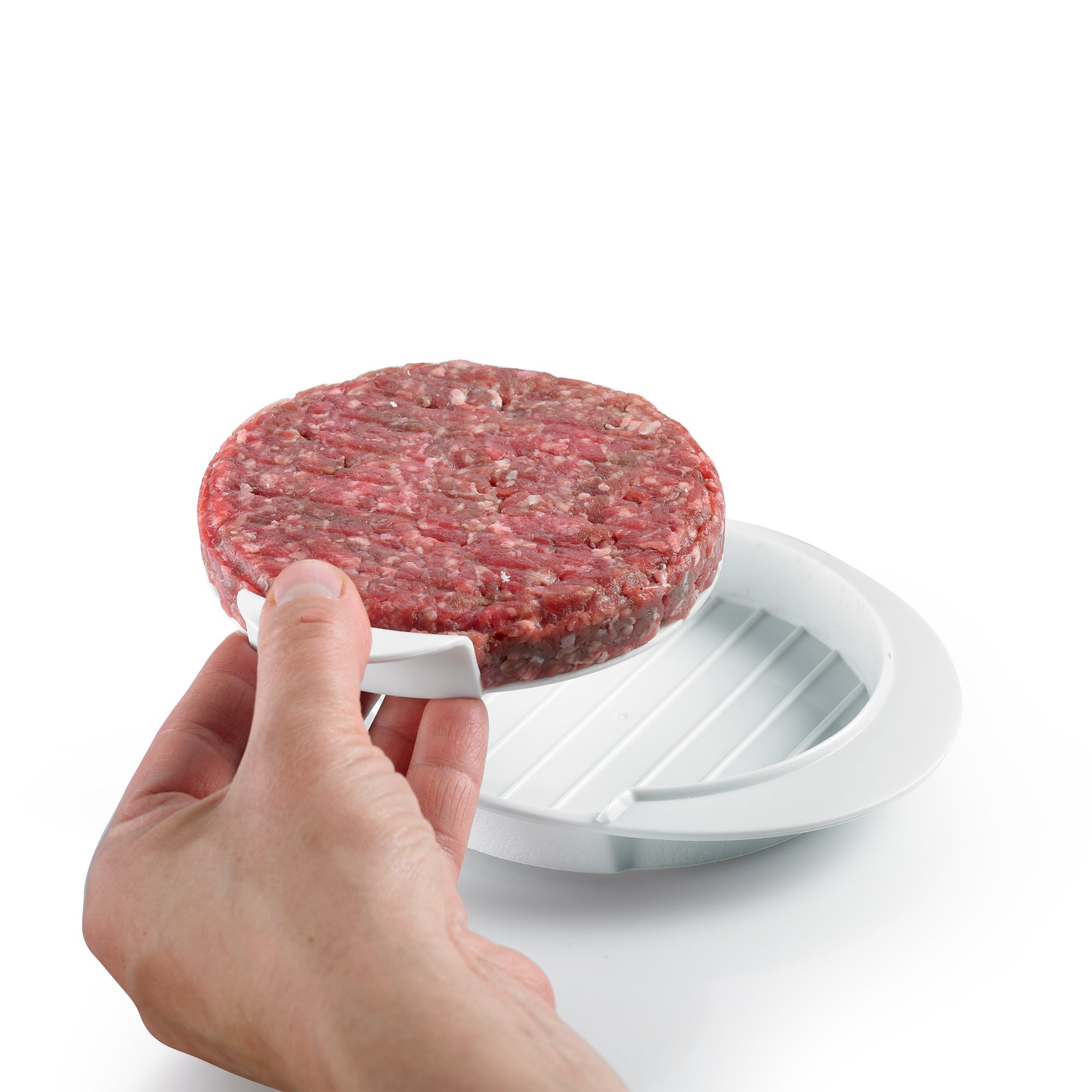 Con questa pressa si ottengono hamburger perfettamente formati a base di carne macinata, soia o verdure (fino a 200 g), con striature, per un aspetto autentico.