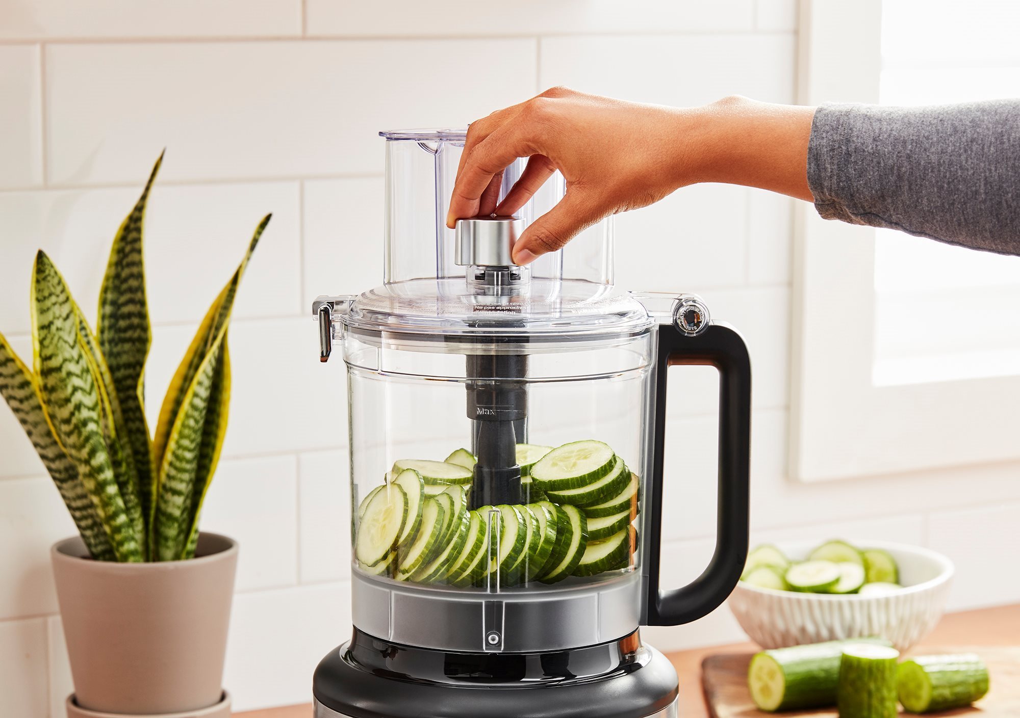 Con l'ausilio di accessori multiuso, come la lama multiuso e la lama impastatrice o il disco affettatrice reversibile, il disco per grattugiare media e il disco per fette spesse, taglierete velocemente pomodori o cetrioli per insalata, potrete grattugiare anche formaggio per patate gratinate o impastare per pane o pizza.