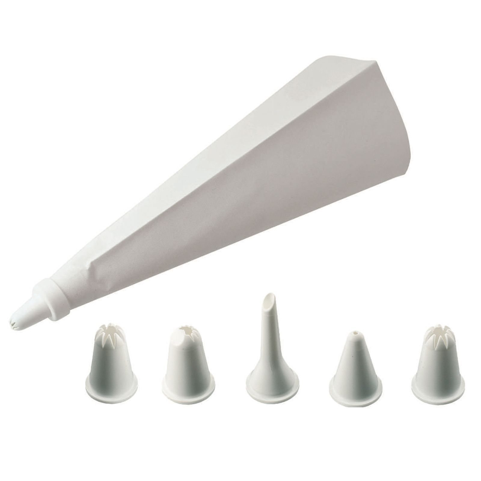 Sac à poche per pasticceria, di alta qualità, lunghezza 28 cm, con 5 beccucci per pasticceria per diverse forme decorative, adattatore incluso, marca Westmark