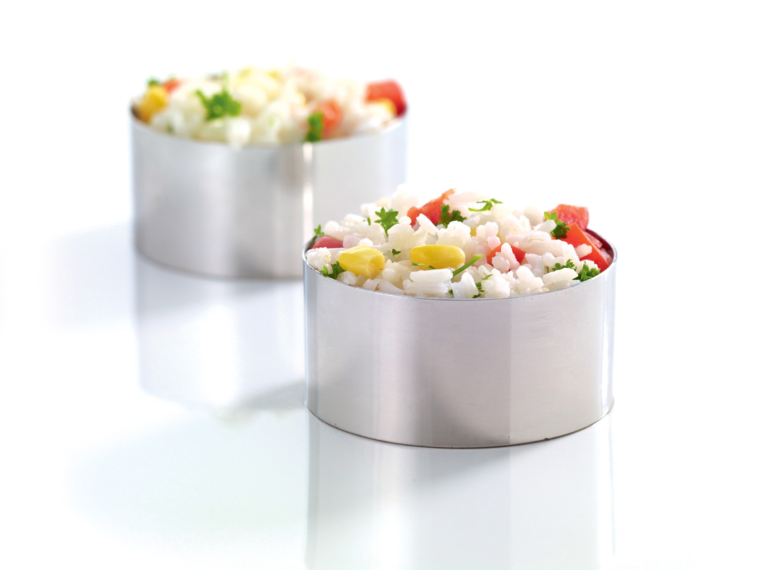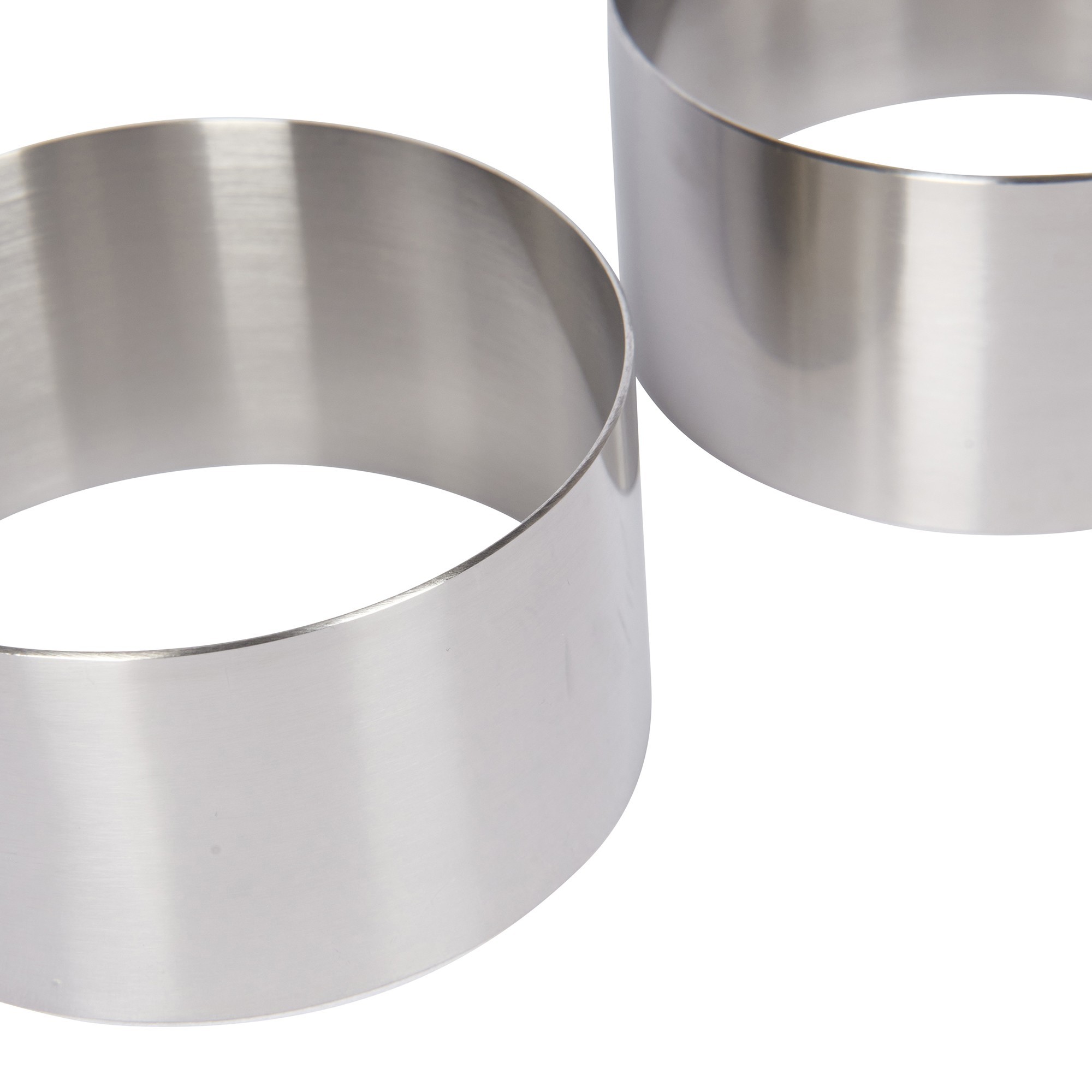 Set di 2 forme rotonde utilizzate per la creazione di decorazioni alimentari, dal marchioKitchen Craft, diametro 7 cm,altezza 3,5 cm, entrambe realizzate in acciaio inossidabile.