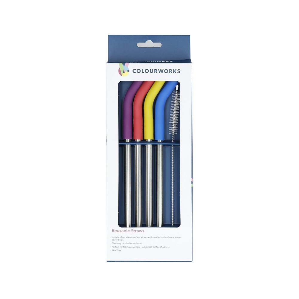 Il set di 4 cannucce metalliche riutilizzabili della gamma Colourworks di Kitchen Craft e la spazzola per la pulizia inclusa offrono una comoda alternativa alla sostituzione delle cannucce di plastica usa e getta, riducendo così l'impatto dell'inquinamento sull'ambiente.