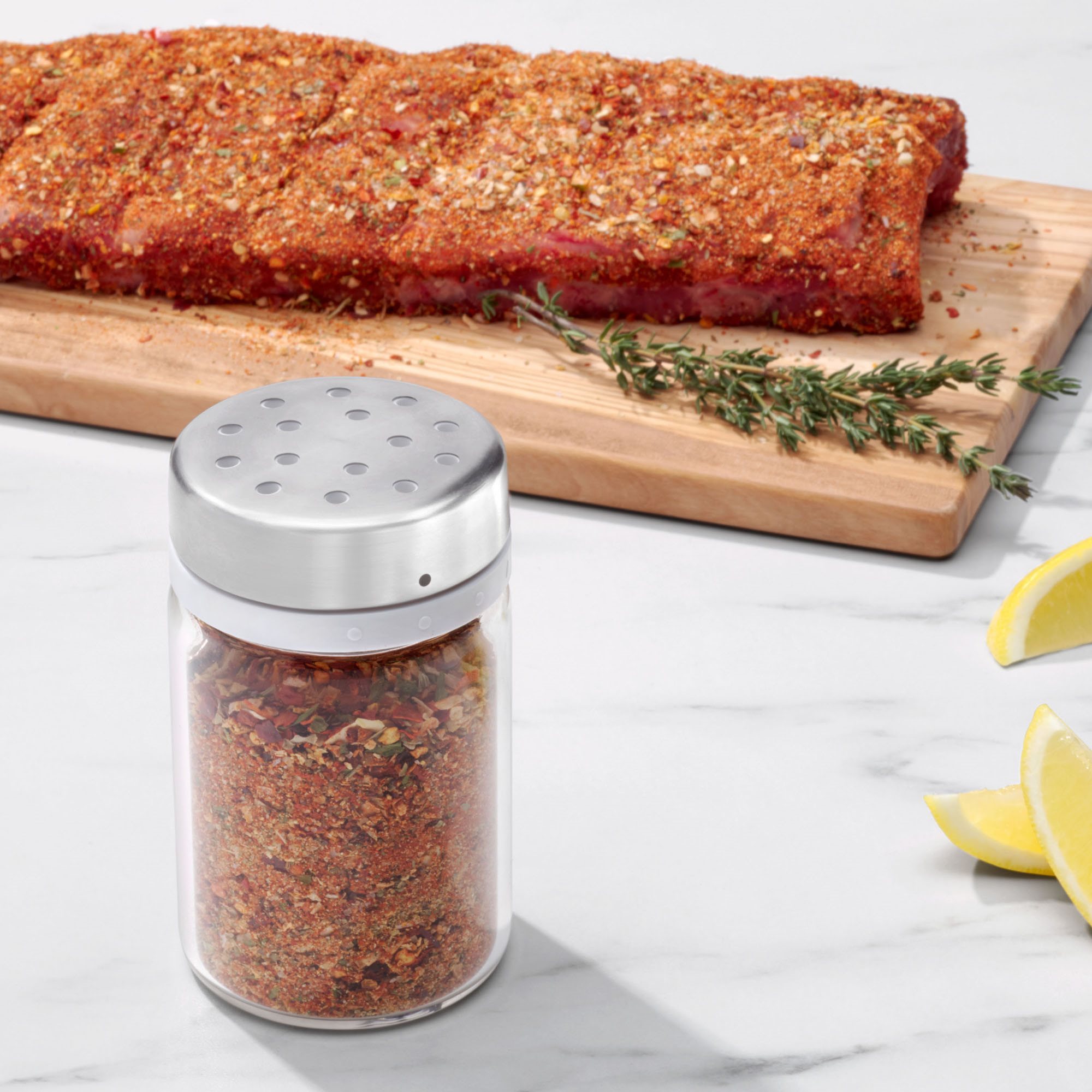 Questo shaker in vetro regolabile a marchio OXO può essere utilizzato con fiocchi di peperoncino, cannella, zucchero a velo o altre spezie fini. Basta ruotare il coperchio in acciaio inossidabile per scegliere tra grandi fori per ingredienti grossolani come erbe essiccate e piccoli fori per aglio in polvere, cannella e altro ancora. Torcere ancora una volta per sigillare il contenitore e preservare la freschezza degli ingredienti. Il coperchio in acciaio inossidabile è rimovibile per una facile pulizia.
