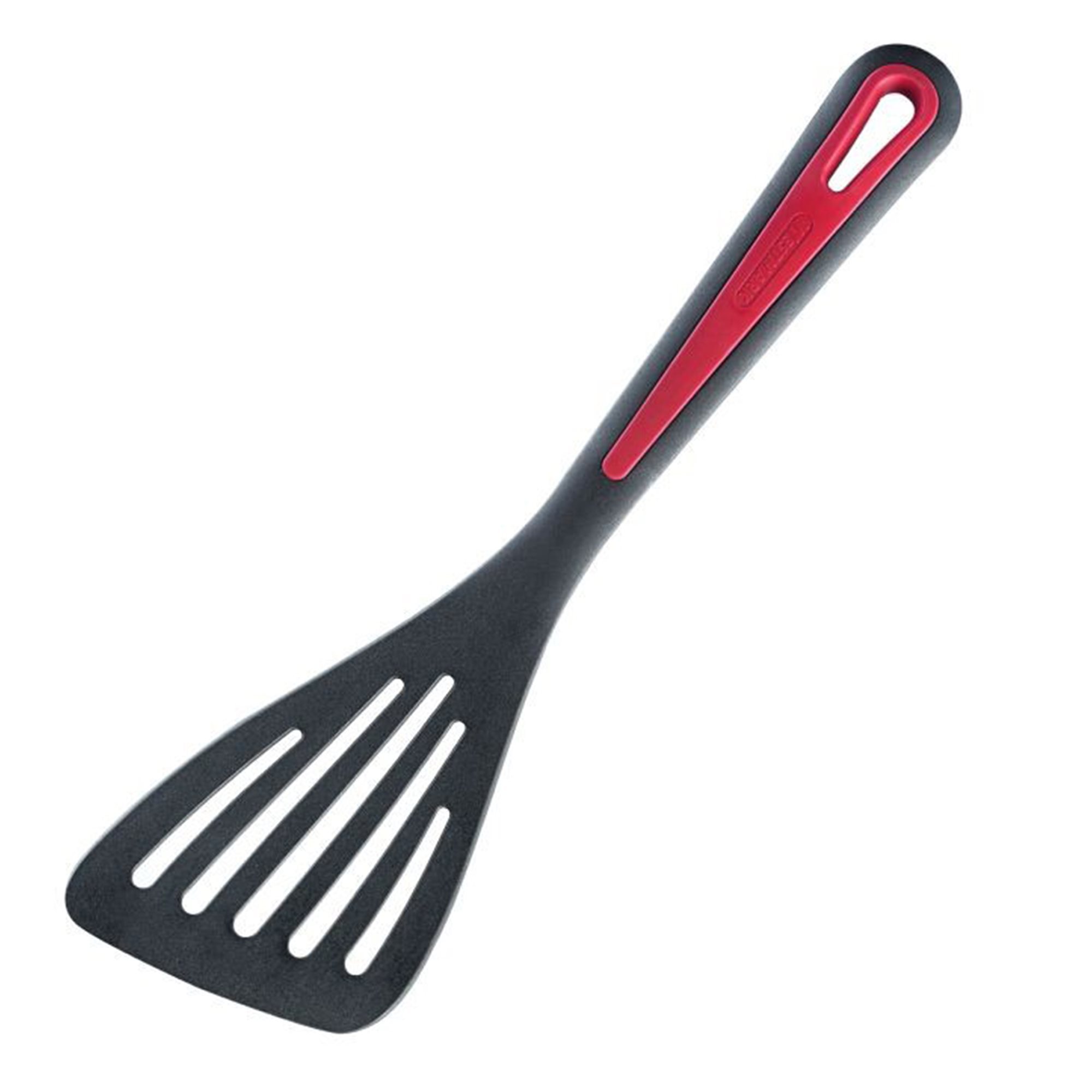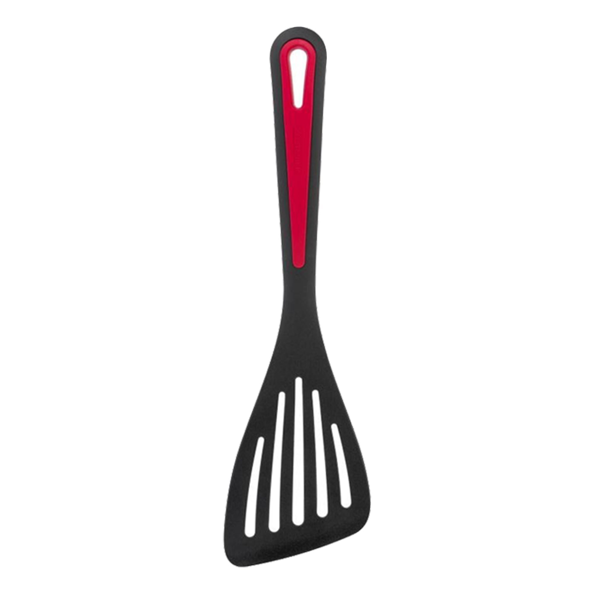 L'impugnatura ergonomica assicura una presa comoda che non permette scivolamenti e presenta un anello utilizzato per appendere il prodotto, rendendo la spatola facile da riporre.