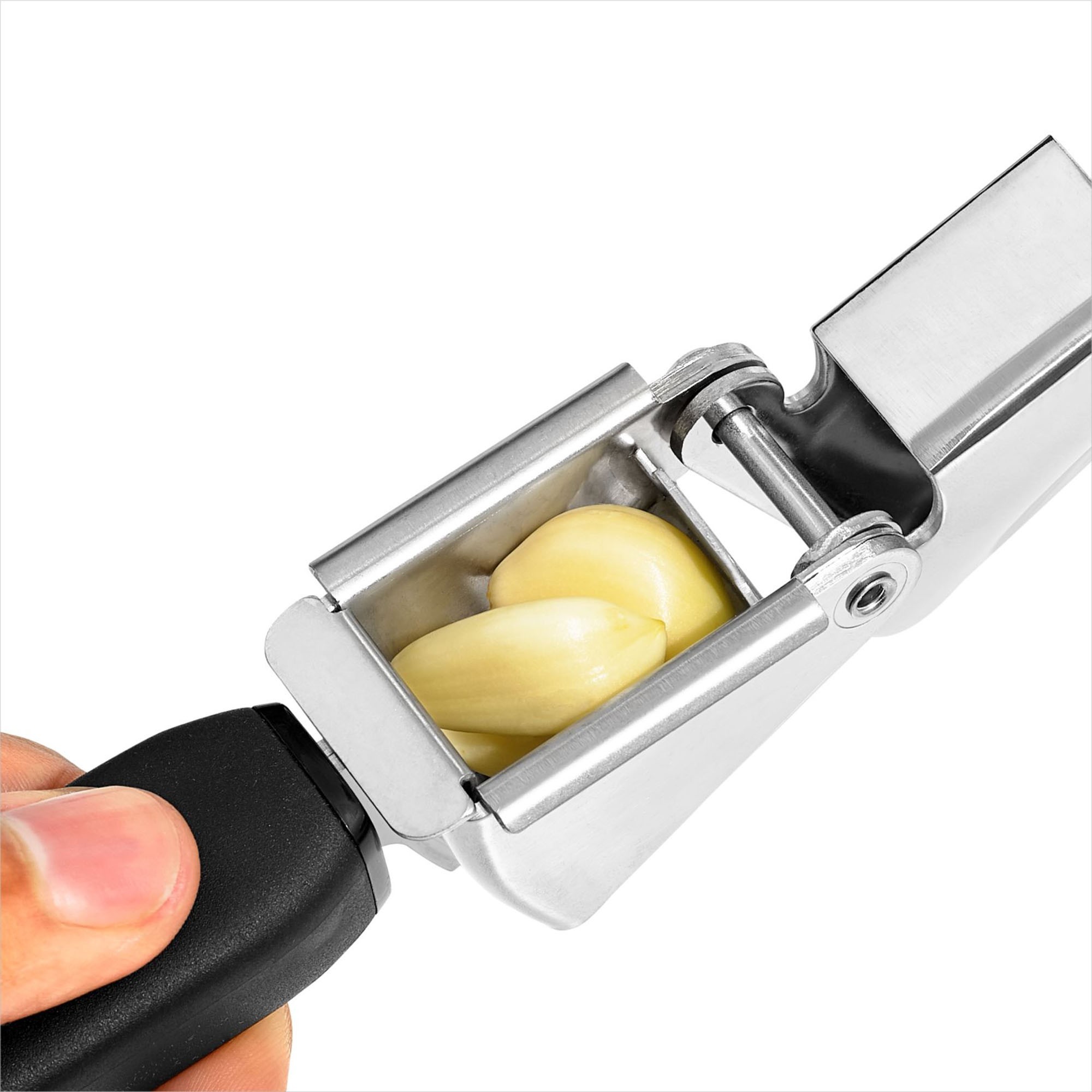 Basta premere con decisione sui bracci della pressa e poi pulirla facilmente. Schiaccerai l'aglio in pochi secondi ed eviterai tutti i fastidi e l'odore indesiderato che deriva dal tritare l'aglio sul tagliere.