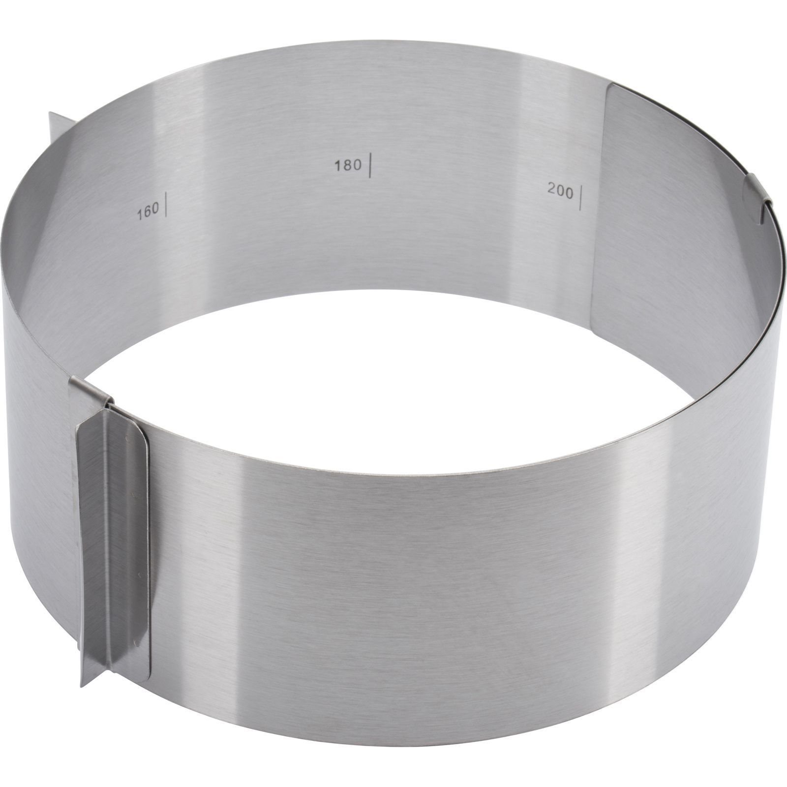 Forma rotonda graduata, marchio Westmark, con un'altezza di 8,5 cm, con un diametro regolabile di 16-30 cm, realizzato in acciaio inossidabile.