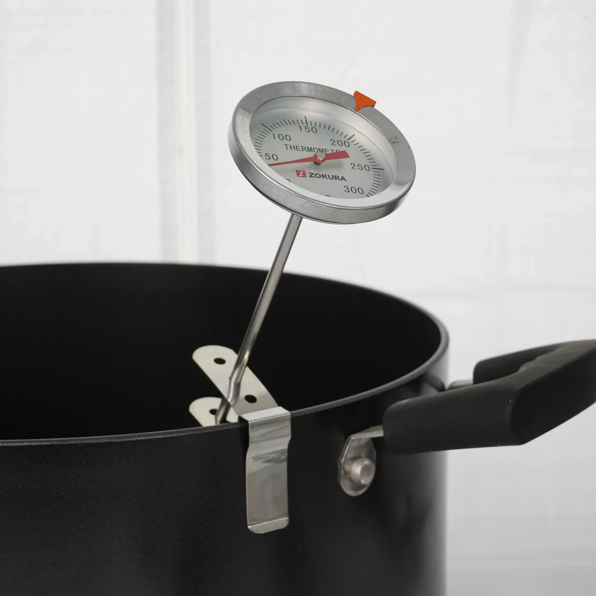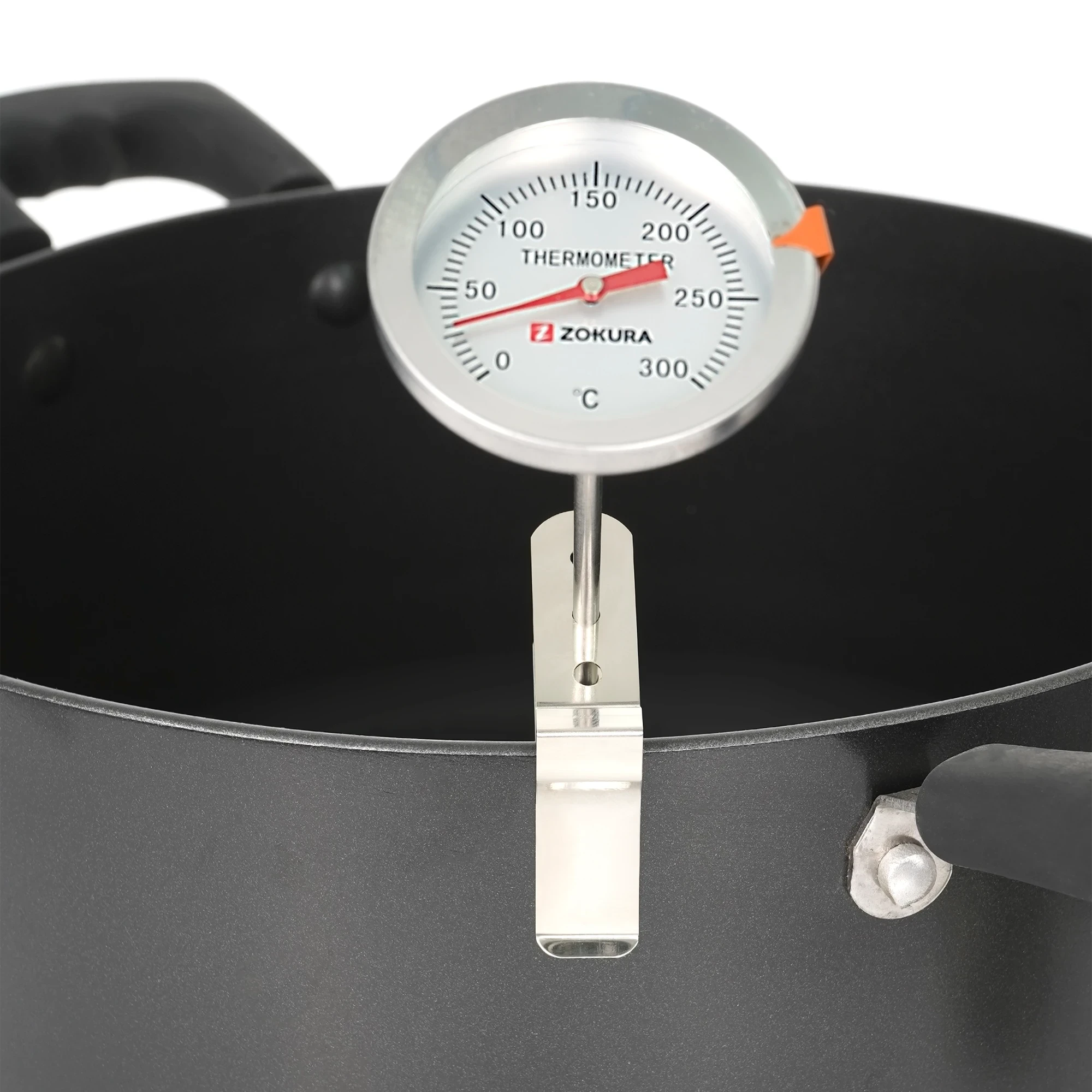Con l'aiuto del morsetto incluso, il termometro può essere utilizzato anche nelle pentole per misurare la temperatura dei liquidi (olio, sciroppo di zucchero).