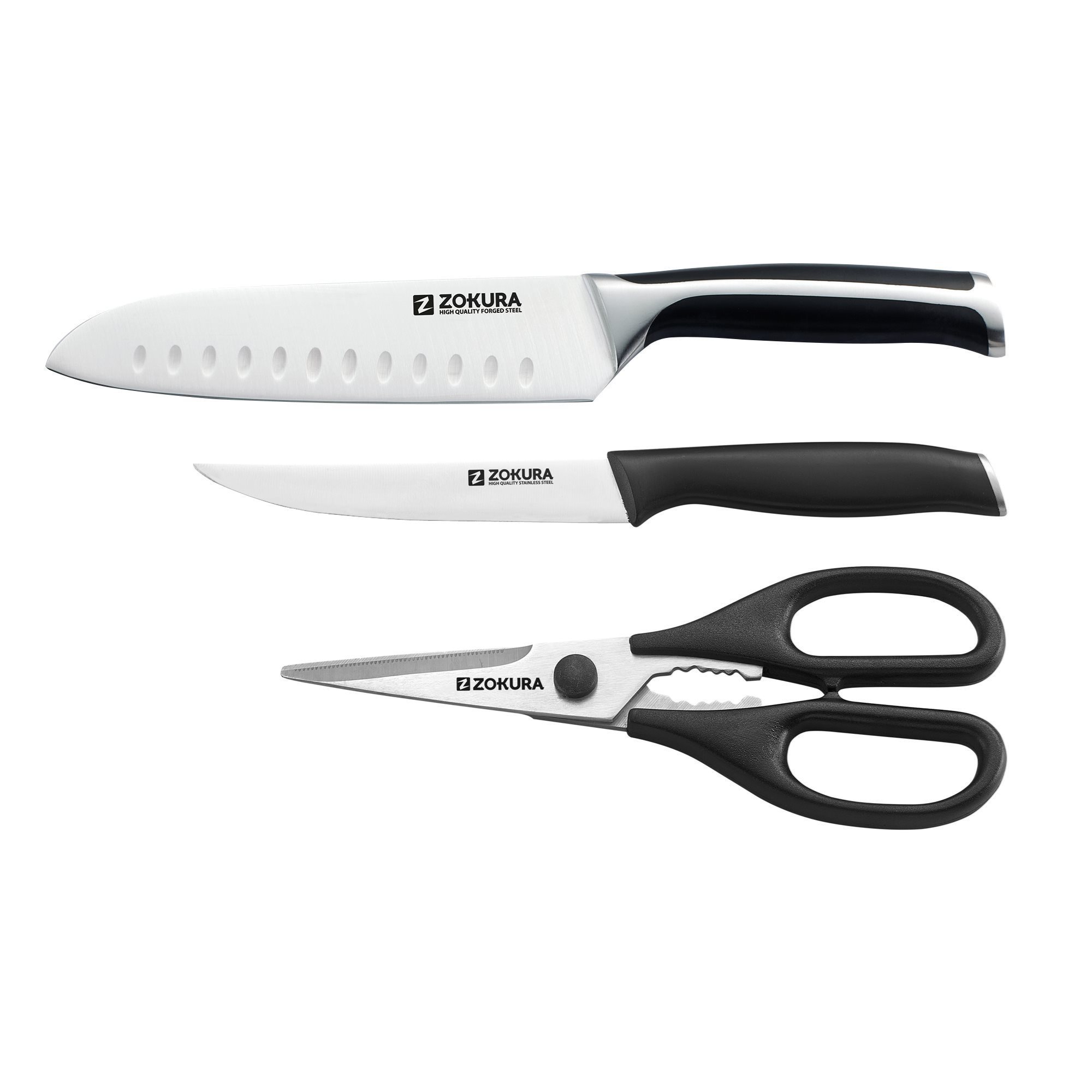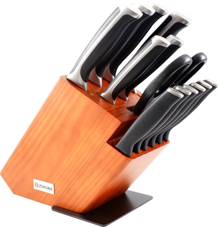 Als u gepassioneerd bent door koken, zal deze set keukenmessen bestaande uit 14 stuks,gemaakt van roestvrij staal,het merk Zokura, u helpen met alle taken in de keuken, variërend van snijden, snijden en tot het serveren van steaks.