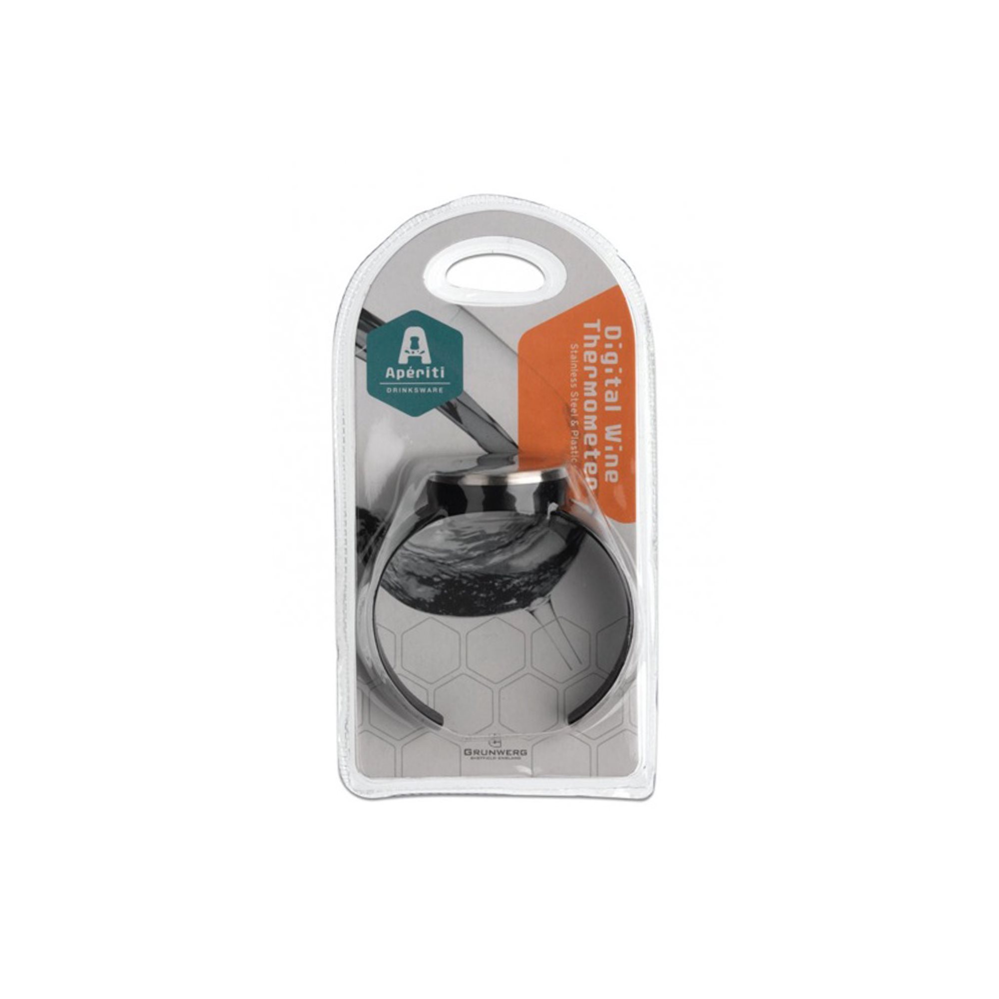 "Aperiti" digitale thermometer, merk Grunwerg, gemaakt van roestvrij staal en plastic, voor wijnflessen.