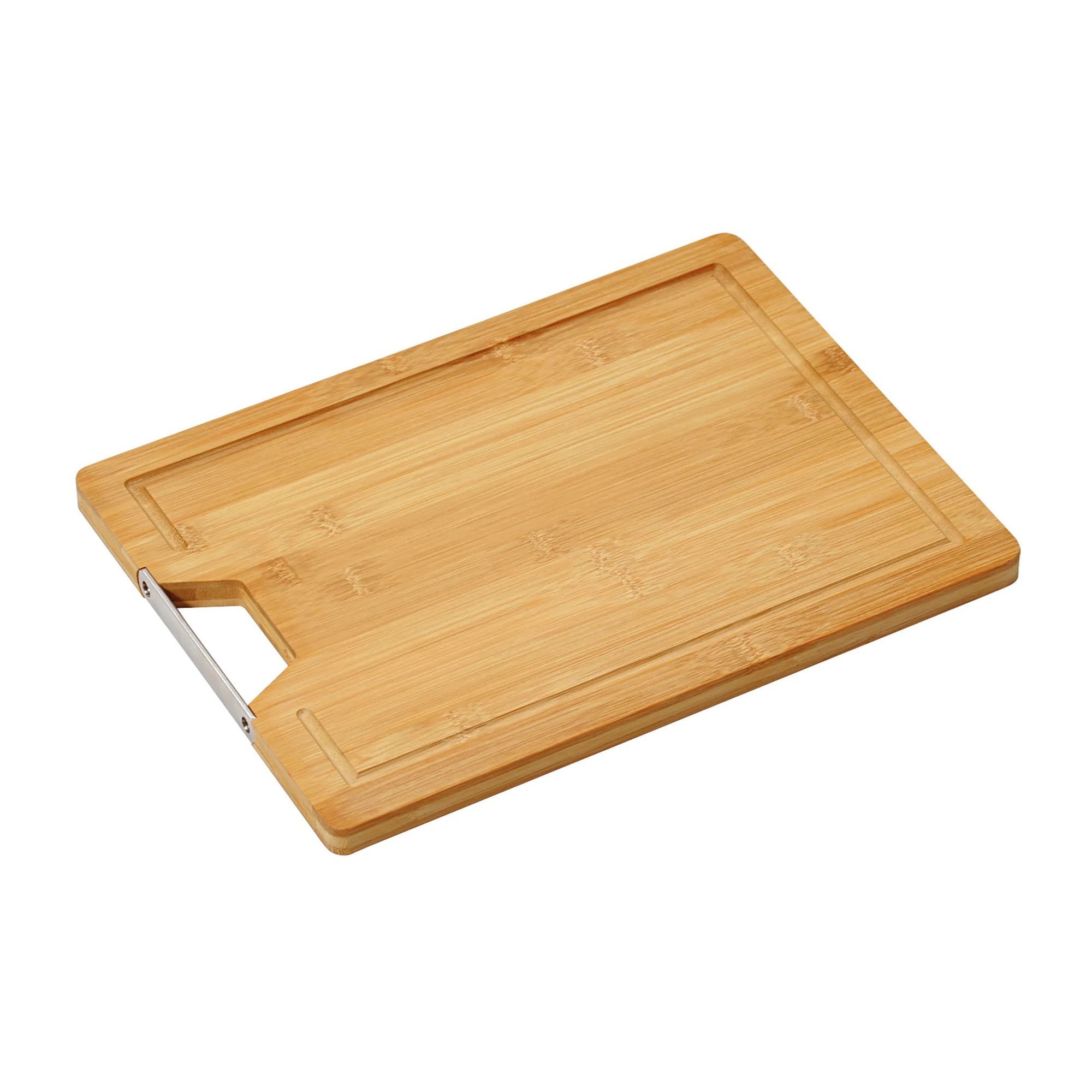 De snijplank heeft een praktische groef voor het afvoeren van sappen, zodat overtollige sappen de rest van het werkoppervlak niet vervuilen. Bovendien is de snijplank voorzien van een metalen handvat voor eenvoudig transport.