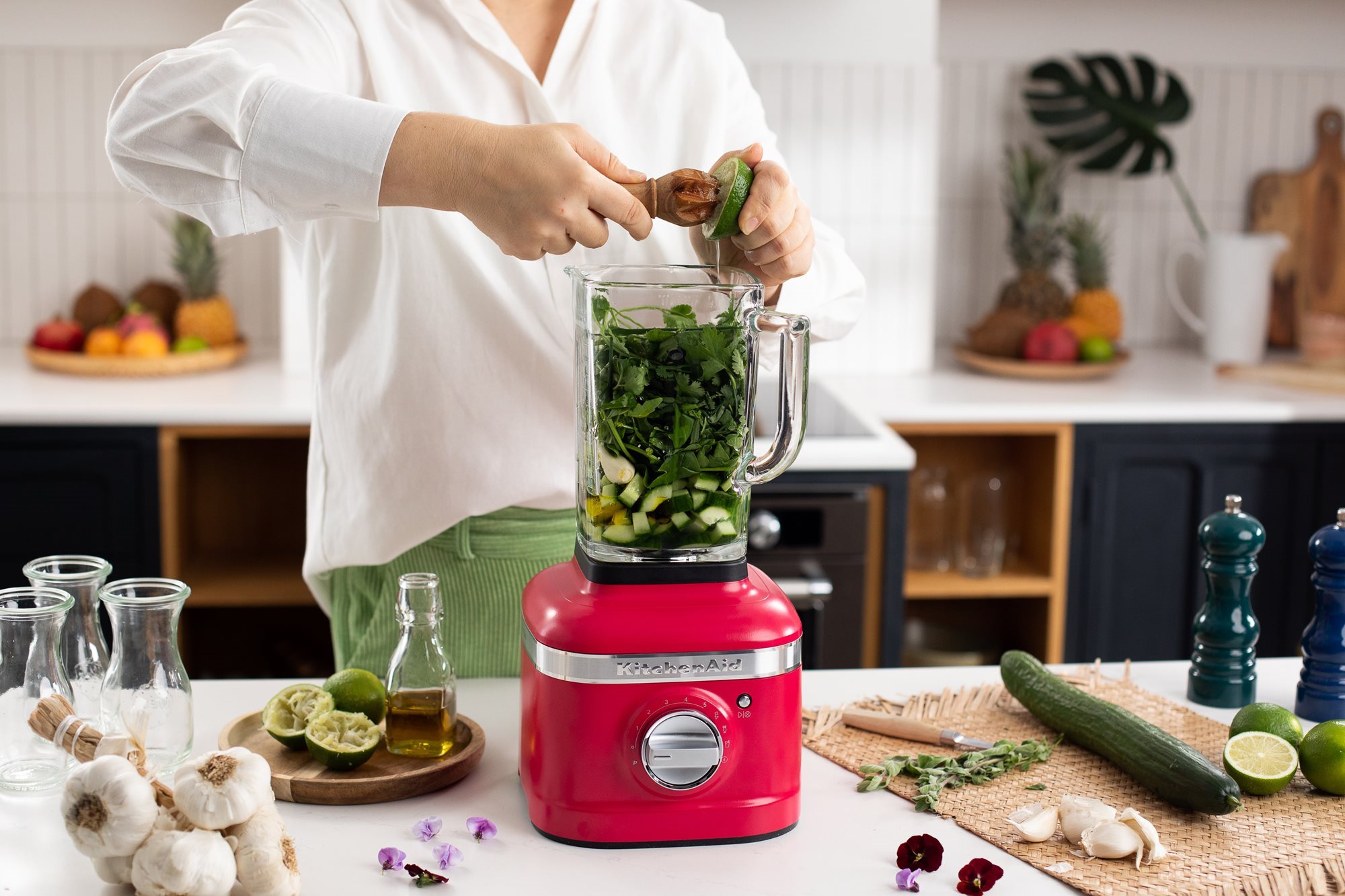 Gebruik deze duurzame K400-blender dagelijks, zo vaak als je wilt, voor het bereiden van groene smoothies voor het ontbijt tot soepen, koude sauzen, notenboter en fijne puree voor het avondeten. Deze blender is voorzien van een stevige gegoten metalen voet, gegoten metalen bedieningsknop en een speciaal ontworpen 3-delig mengsysteem.