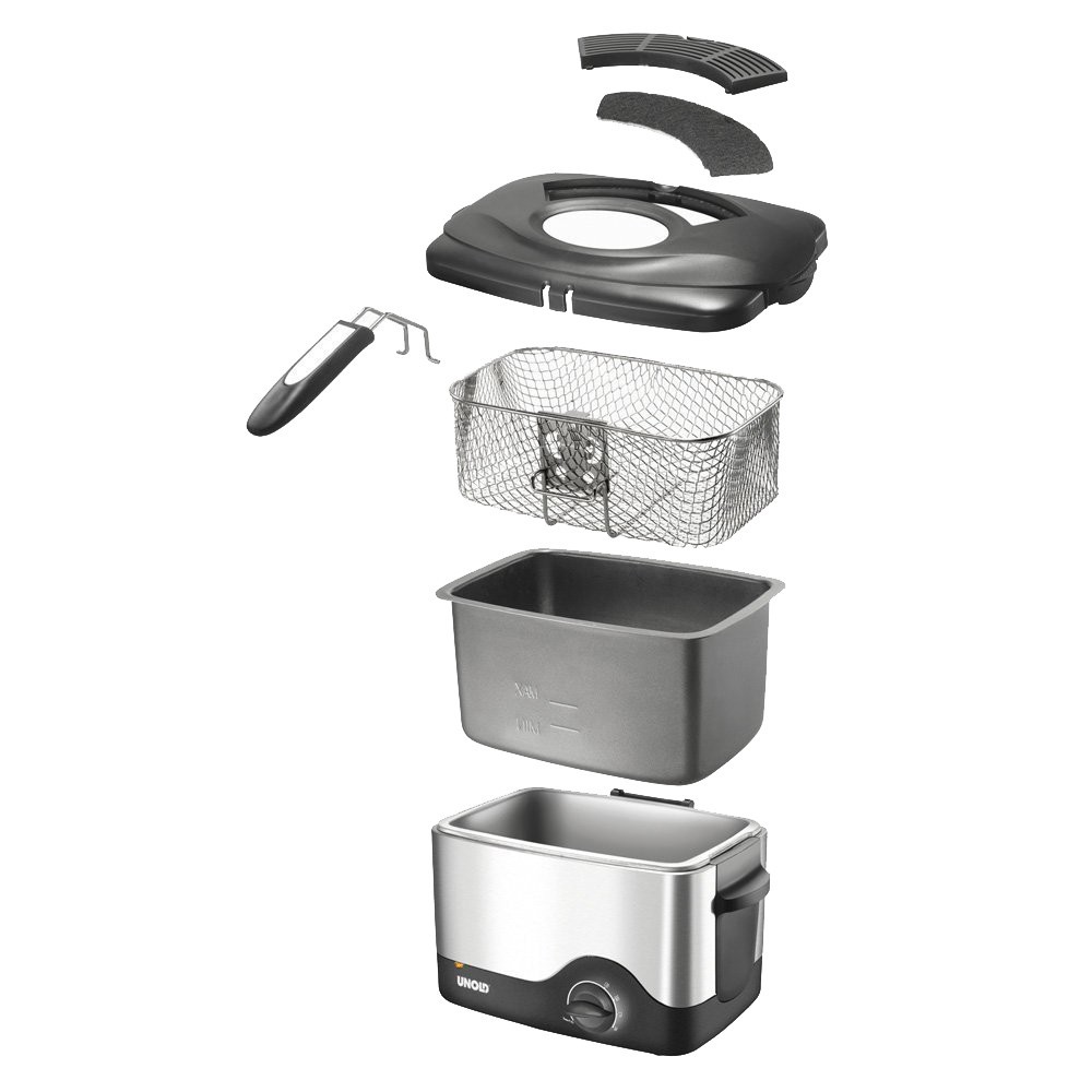 - Het deksel, het oliereservoir en de frituurmand zijn afneembaar;