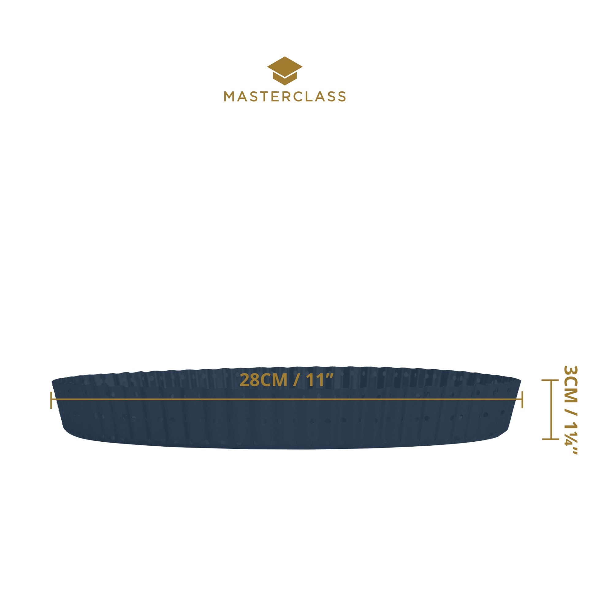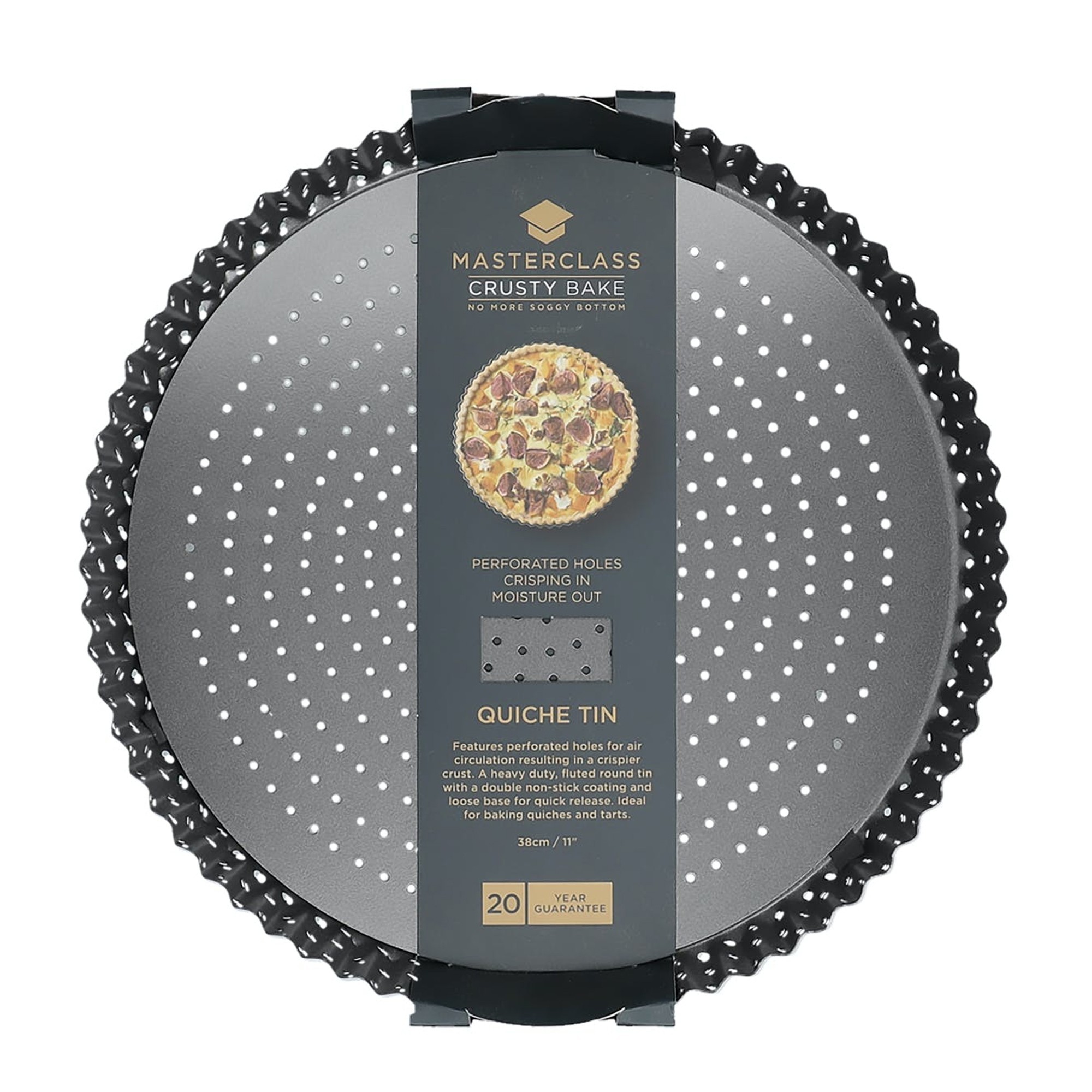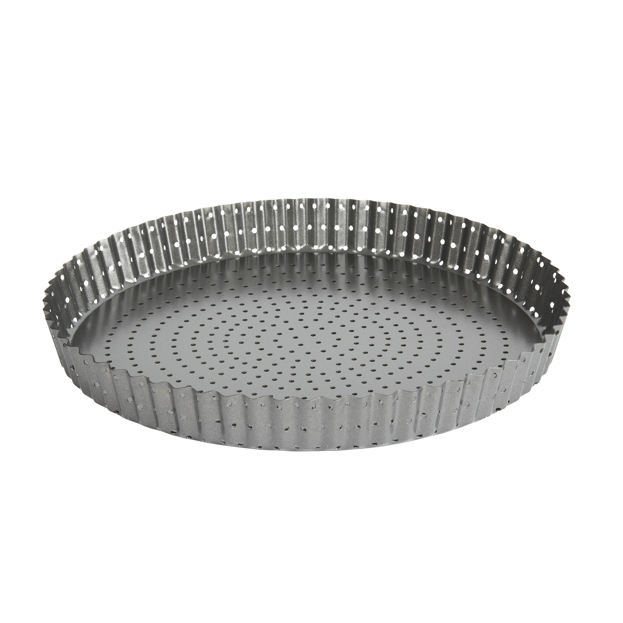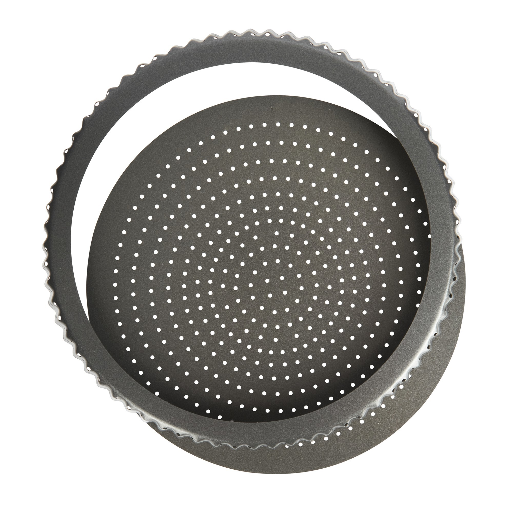 Geperforeerde taartvorm met antiaanbaklaag en afneembare bodem, uit de serie " Master Class " , gemaakt van staal met keramische deeltjes, geproduceerd door Kitchen Craft.