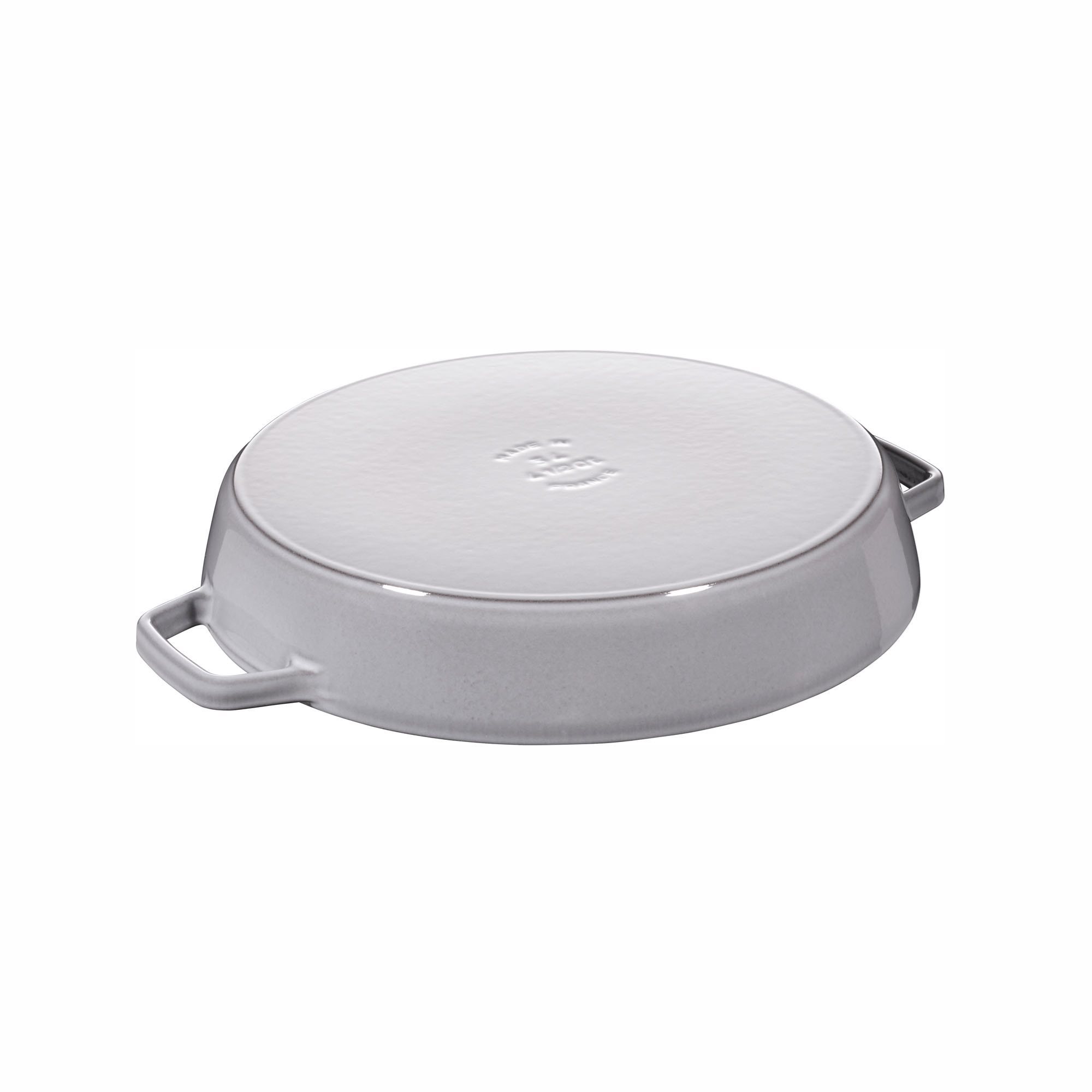 Aan de binnenkant is de braadpan voorzien van een laag matzwart email die door Staub is geproduceerd door middel van speciale technologieën die voordelen bieden bij kooktechnieken. Oliën (vetten) die tijdens het koken worden gebruikt, dringen door de poriën van het matte email en creëren een glad, natuurlijk antiaanbaklaag. Daarom wordt het Staub kookgerei met het verstrijken van de jaren steeds beter naarmate je het gebruikt.