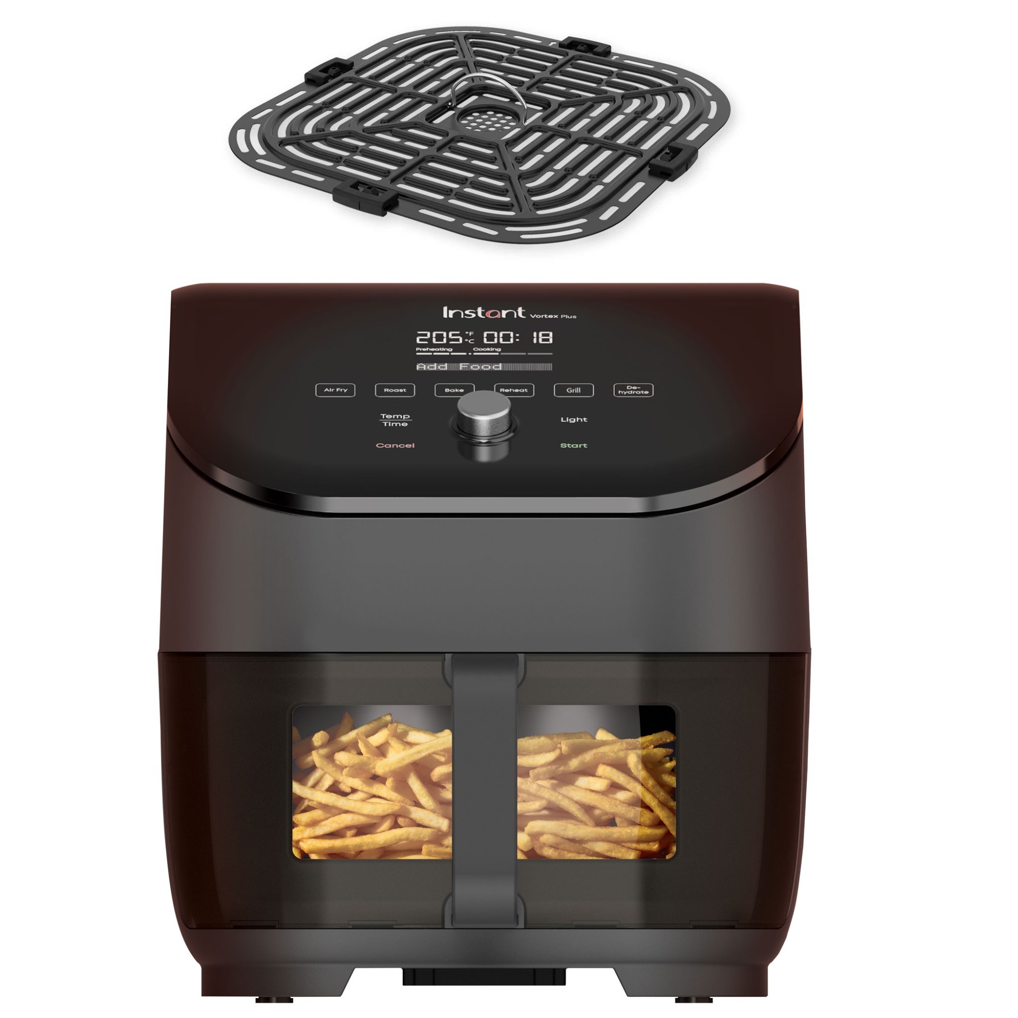 Met de nieuwe Vortex Plus 6 ClearCook heteluchtfriteuse, merk Instant Pot , kunt u nu de kookstatus controleren zonder de mand te openen. Het innovatieve transparante venster werkt met een perfect geplaatst licht aan de binnenkant, zodat u precies kunt zien hoe uw eten wordt bereid, welke functie u ook gebruikt. Tot 6 porties frituren, bakken, bruinen, drogen of opwarmen in één apparaat met een grote mand, met ruimte voor 1 kg friet of een kip van 1,8 kg.