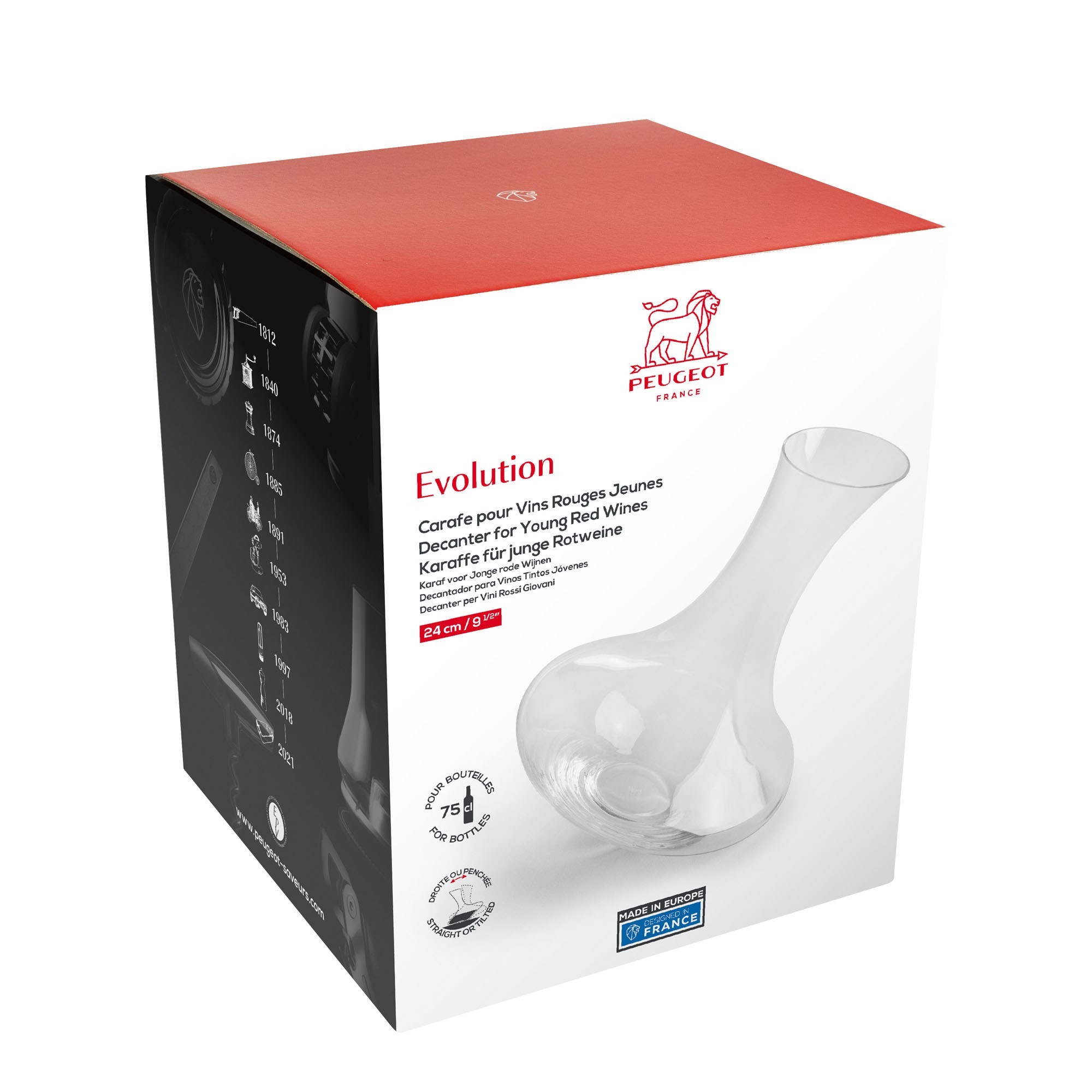 Karaf voor rode wijn "Evolution" - inhoud 750 ml, gemaakt van hoogwaardig glas, merk Peugeot