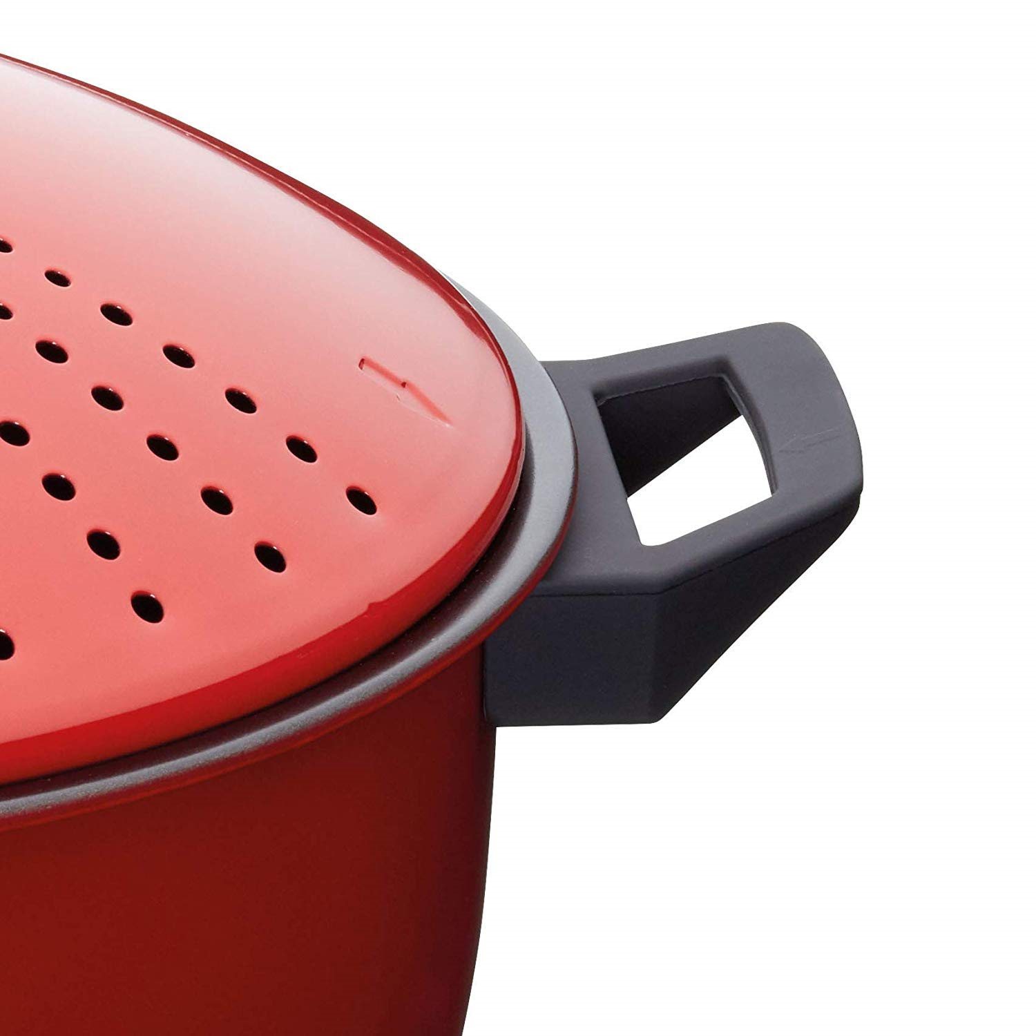 Wat maakt deze kookpot ideaal voor het koken van pasta? Welnu, een van de voordelen is de binnenste antiaanbaklaag die voorkomt dat de pasta aan het oppervlak van de kookpot blijft plakken.