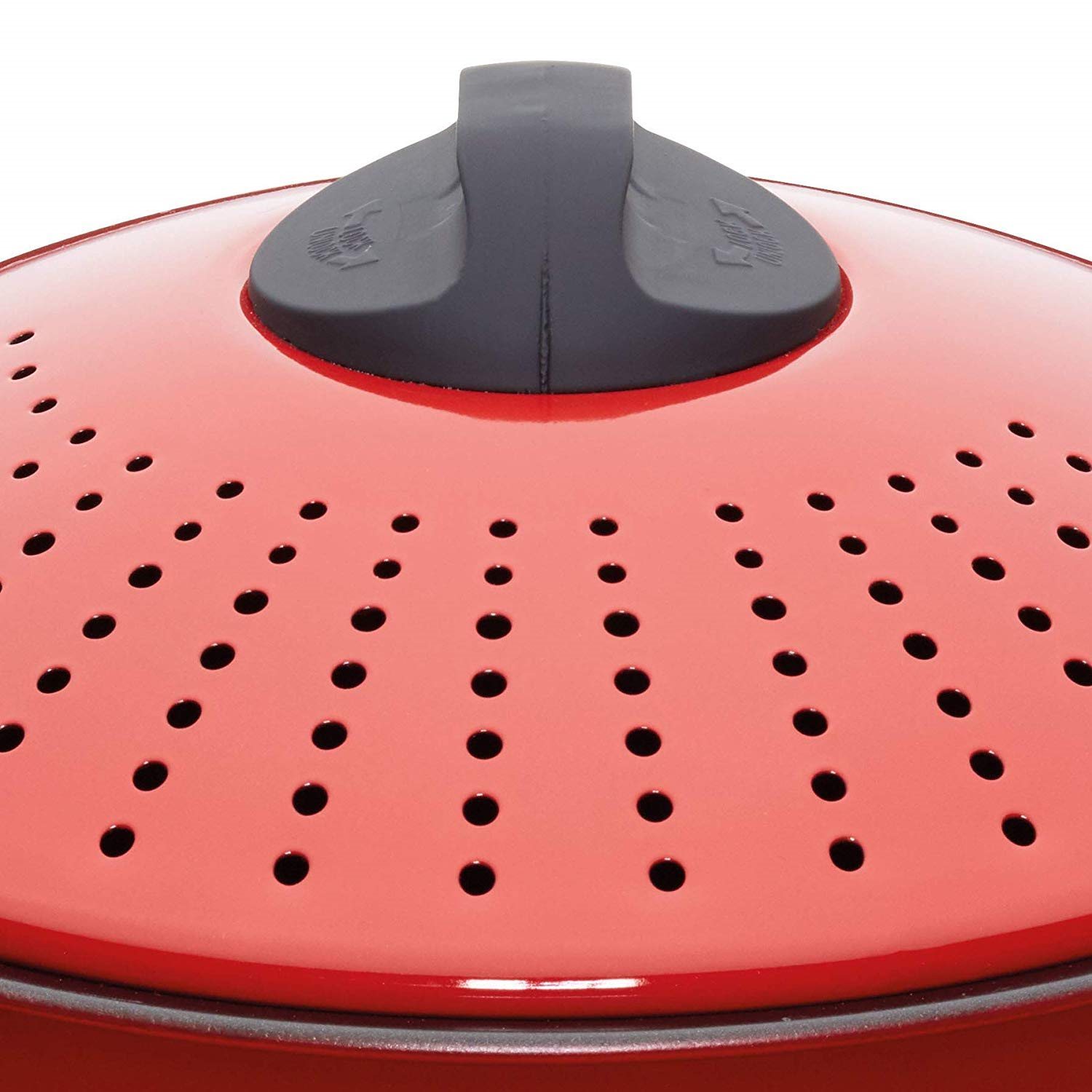 Een ander voordeel is de geperforeerde deksel, die goed vastzit op de kookpot, waardoor je het water na het koken uit de kookpot kunt laten lopen, zonder dat je bang hoeft te zijn dat het deksel eraf valt als de pot wordt gekanteld.