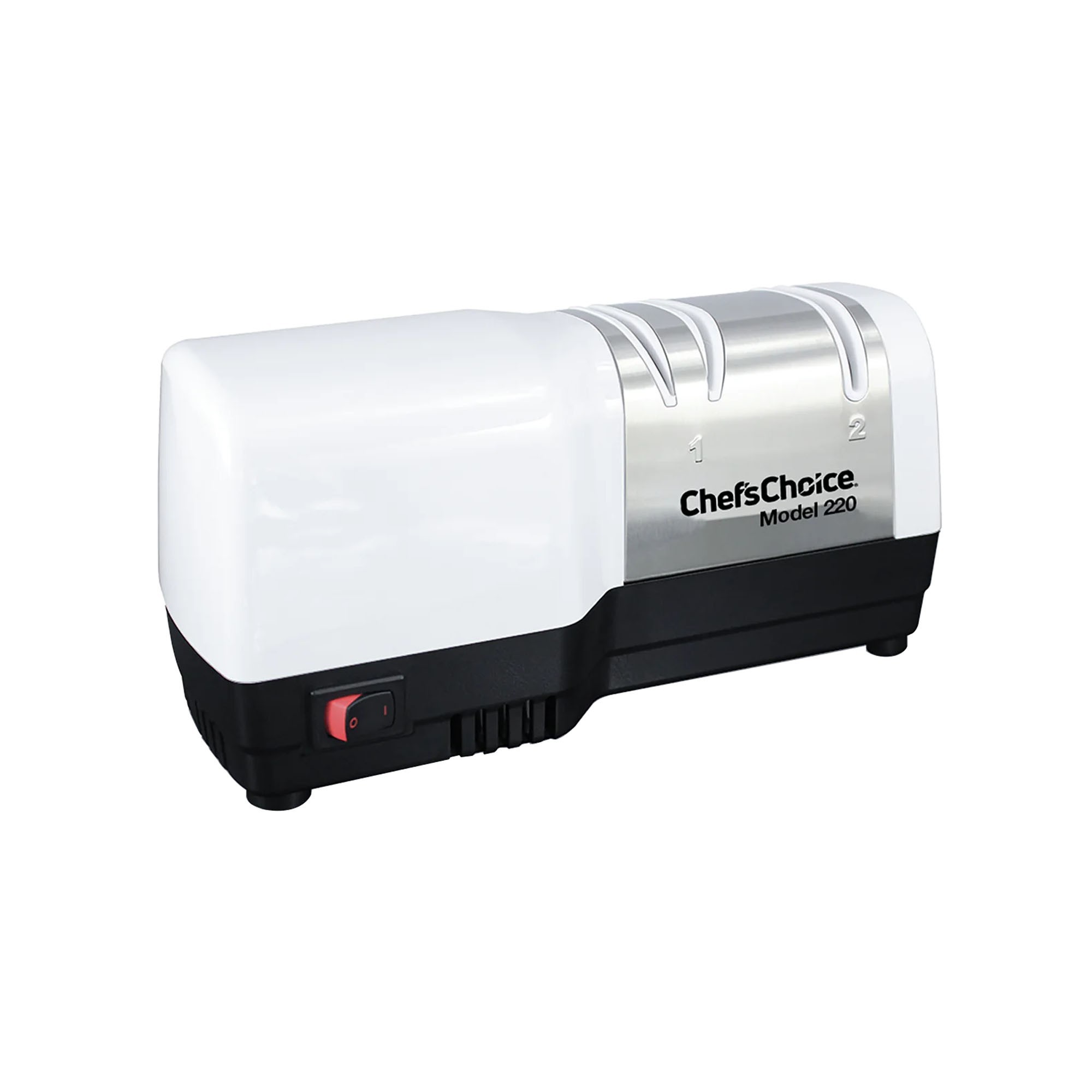 Diamond Hone® Model 220 Messenslijper combineert geavanceerde elektrische en handmatige slijptechnieken om een uitzonderlijk efficiënt mes te creëren voor bijna elk mes. De snijkant is fijn gevormd voor extreme scherpte, maar het behoudt zijn sterke microscopisch kleine tanden waardoor het een zeer effectieve "bite" is voor al uw voedselbereidingsbehoeften en vooral voor vezelige materialen.