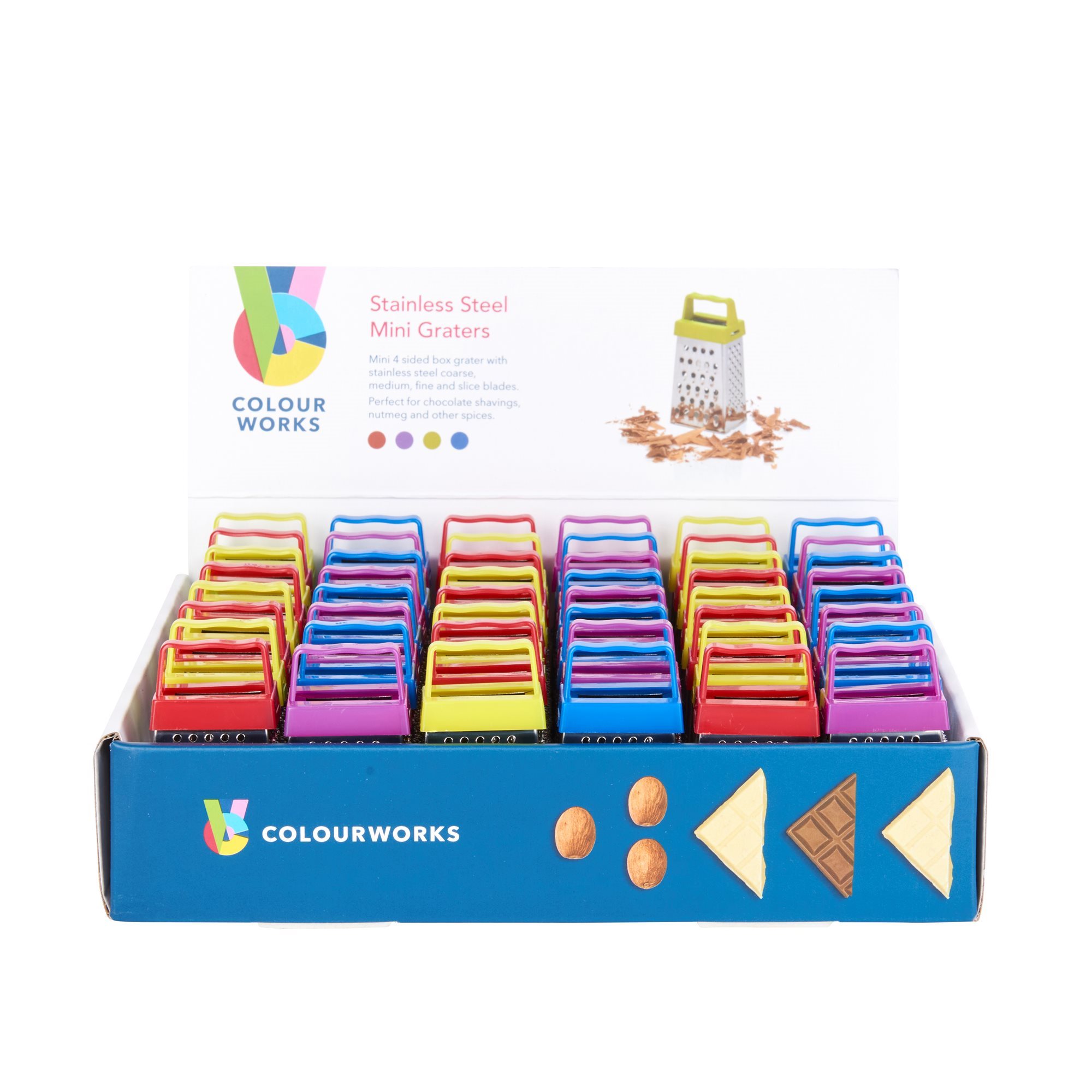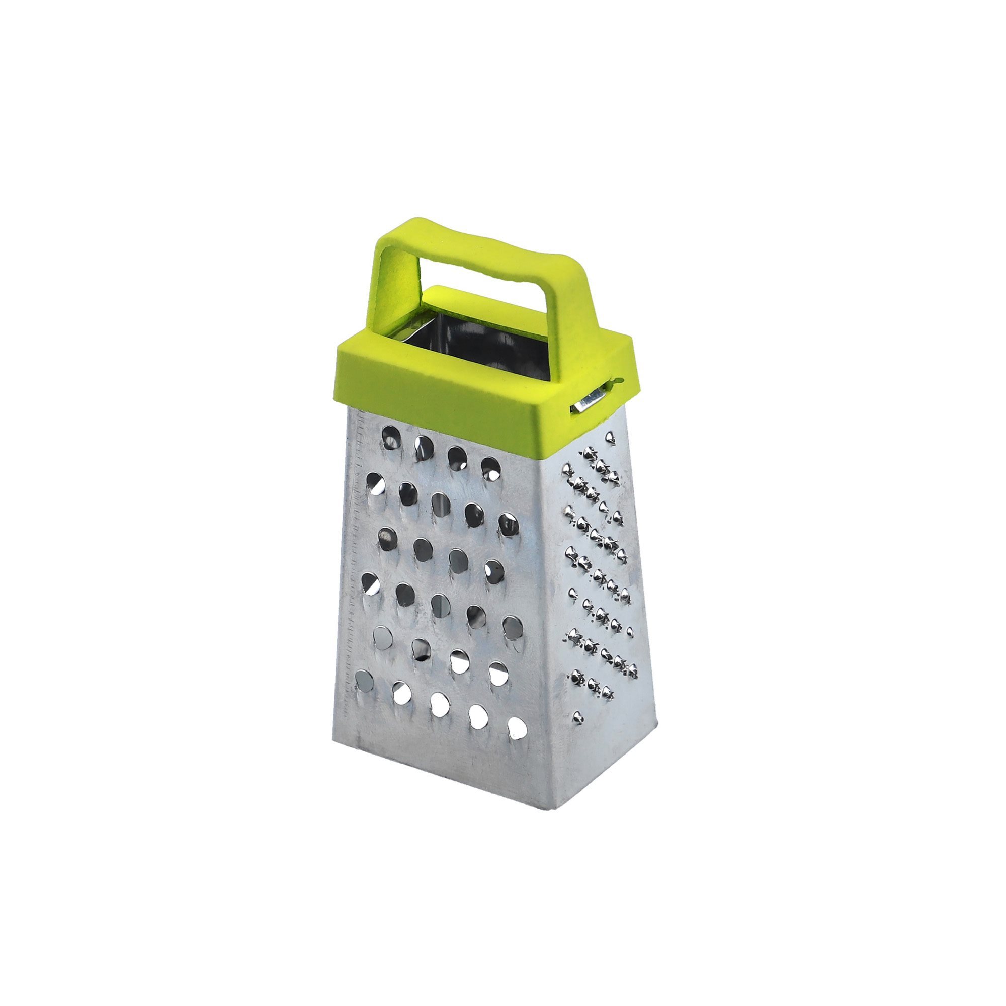 Multifunctionele rasp met 4 zijden (snijden, grof/medium/fijn raspen), geproduceerd door Kitchen Craft, gemaakt van roestvrij staal, met een kunststof handvat, maat 7 cm. Het is ideaal voor het snijden of raspen van chocolade, nootmuskaat en noten in drie verschillende texturen.