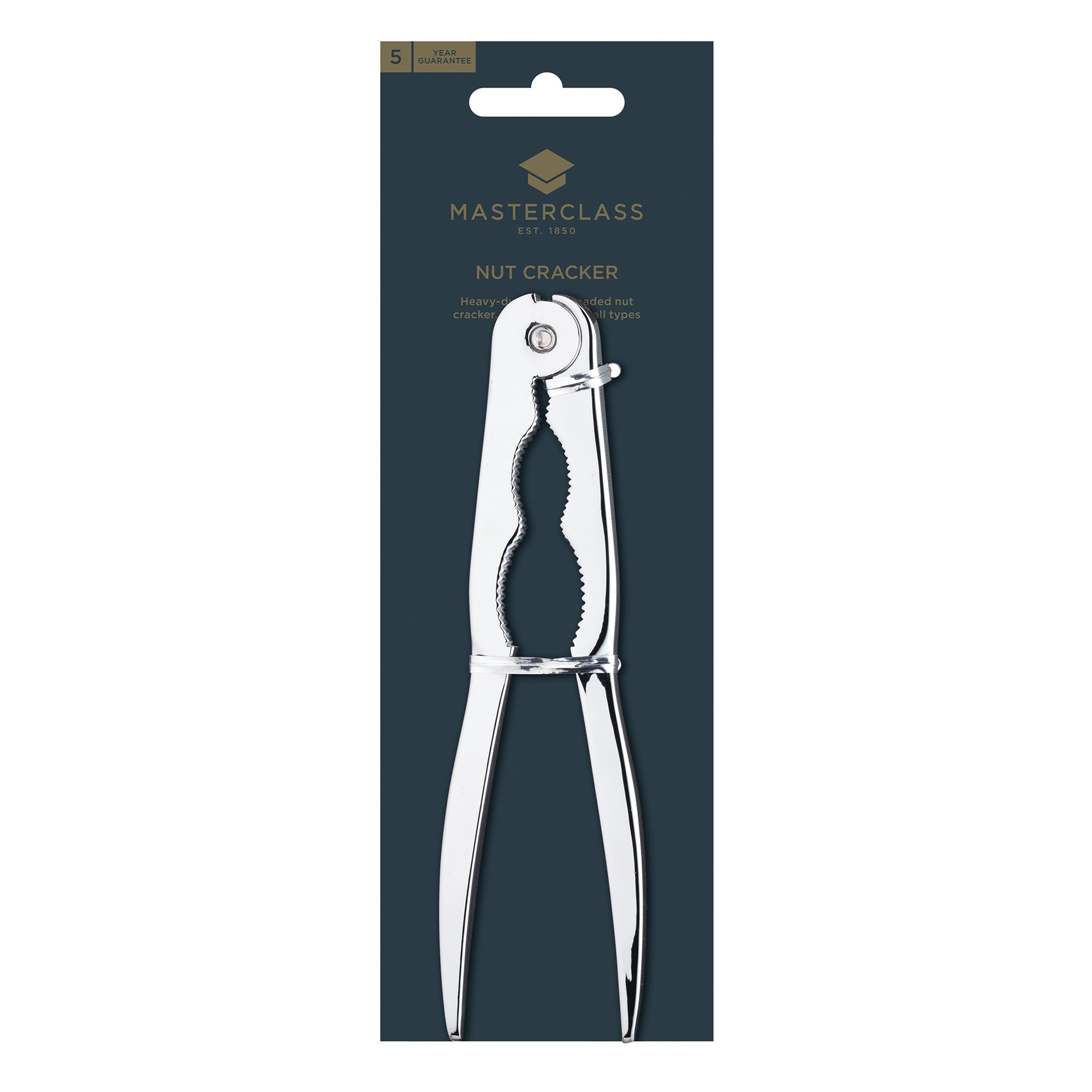 Notenkraker, van Kitchen Craft, lengte 17 cm, met afgewerkte en spiegelachtige gepolijste look, voorzien van een speciaal gecreëerde veer voor gemakkelijk en langdurig gebruik. De gekartelde handvatten houden de walnoten stevig vast en zorgen ervoor dat ze niet uit hun greep kunnen bewegen.