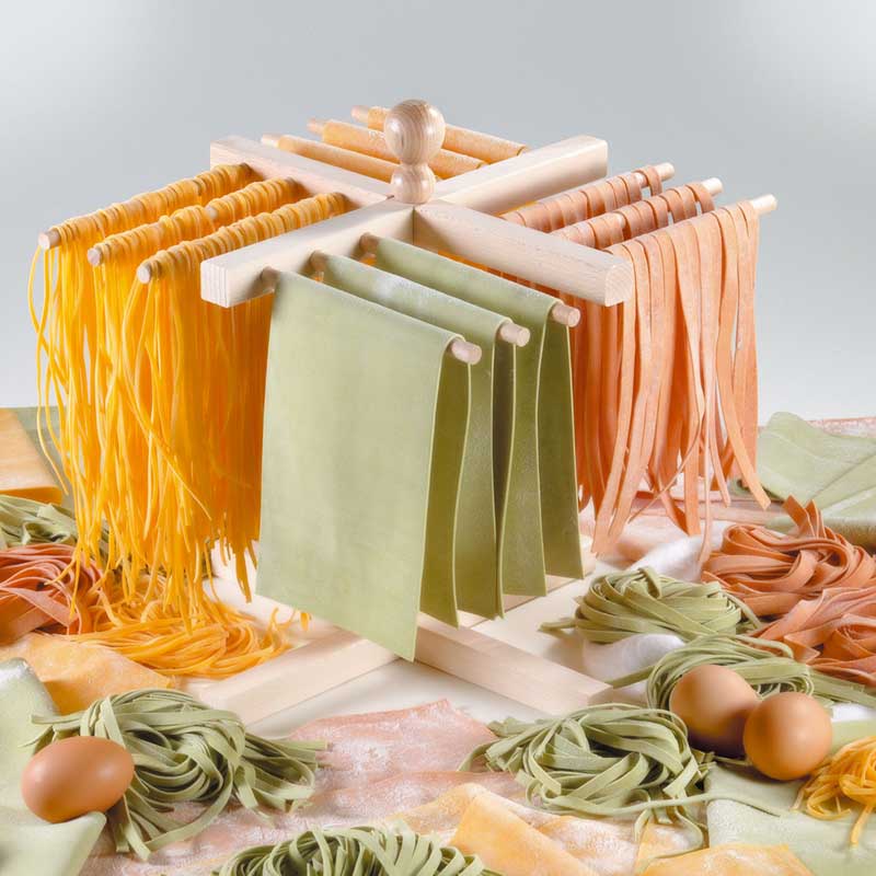 Robuust en praktisch, dit rek lost ruimteproblemen op met betrekking tot het drogen van pasta (ongeveer 1 kg per keer).