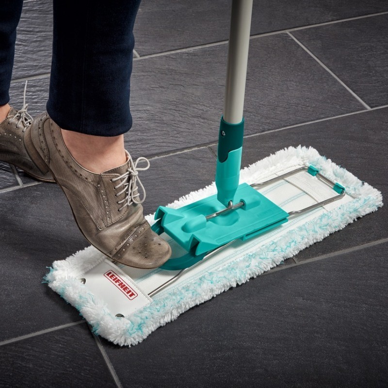 Met de mop kunnen moeilijk bereikbare plekken, zoals onder kasten, meubels of bedden, eenvoudig worden gereinigd.