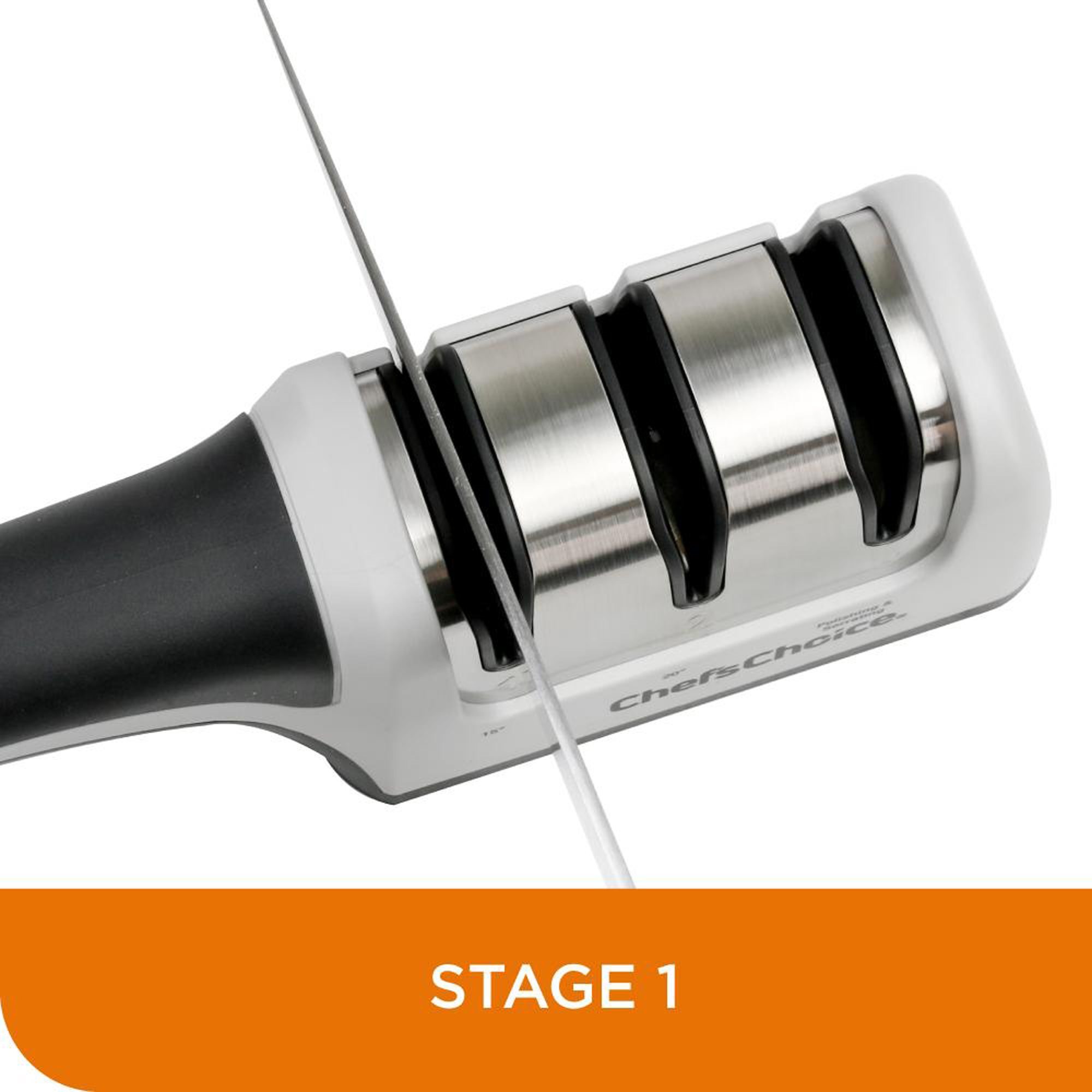 Chef's Choice ProntoPro 4643 handmatige messenslijper zorgt voor een ongelooflijk nauwkeurig, professioneel en zeer scherp mes. Dit wordt bereikt met behulp van de combinatie van schijven met 100% diamant, effectieve CrissCross-technologie en het nauwkeurige slijpsysteem.