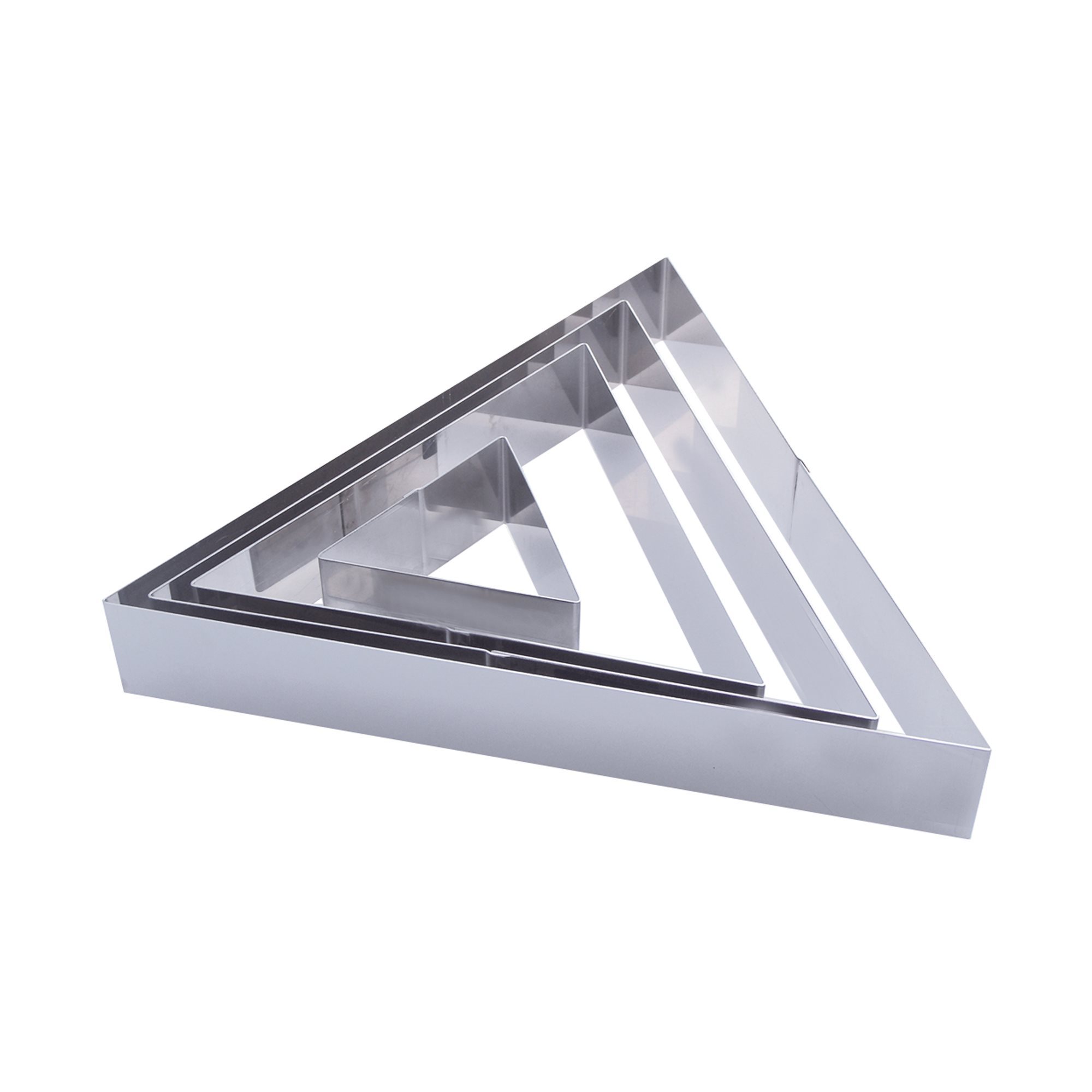 Driehoekige mal voor taarten, het merk De Buyer, gemaakt van roestvrij staal.