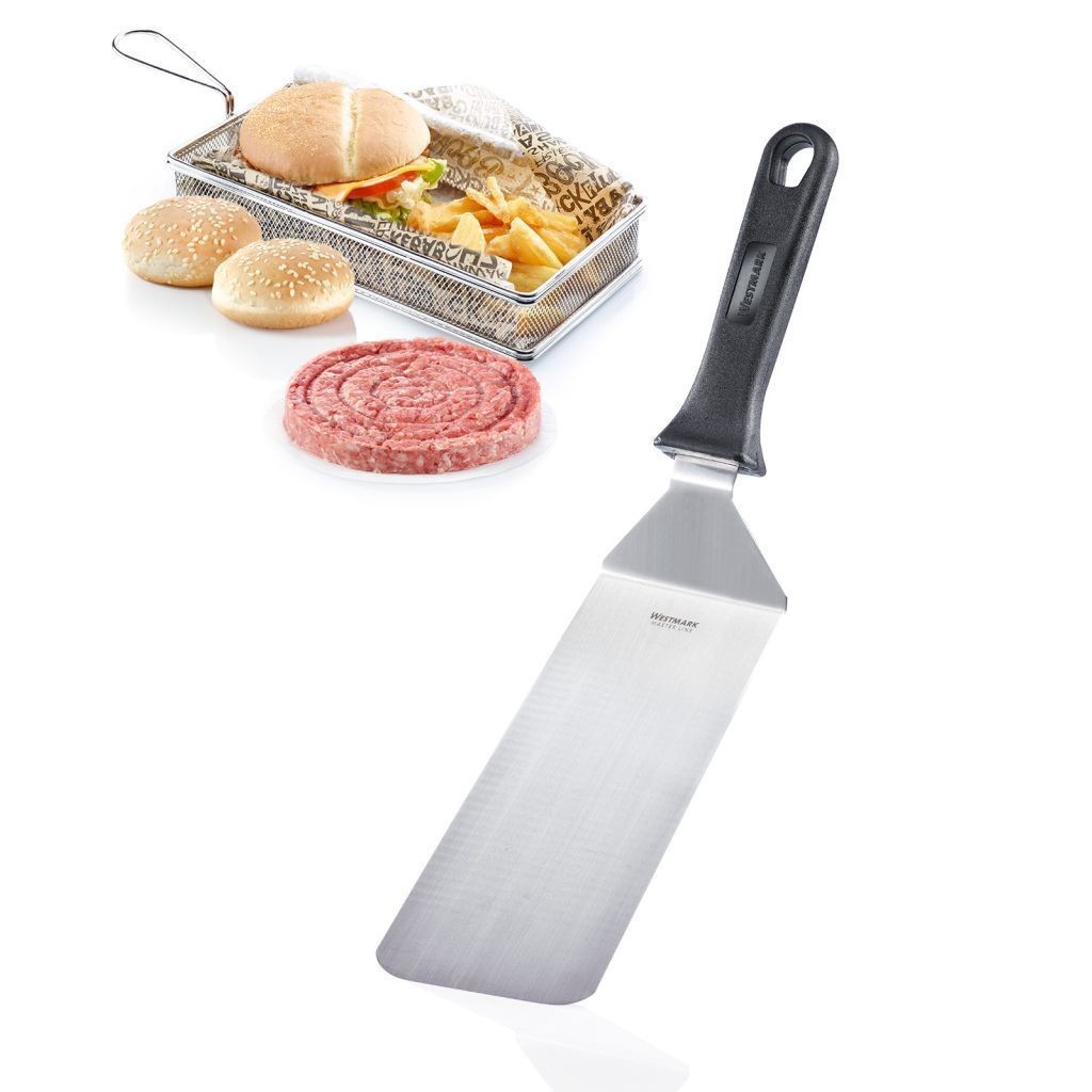 Deze spatel is ideaal voor het bereiden en overbrengen van gefrituurd voedsel van de kookplaat, pan of grill direct op de plaat.