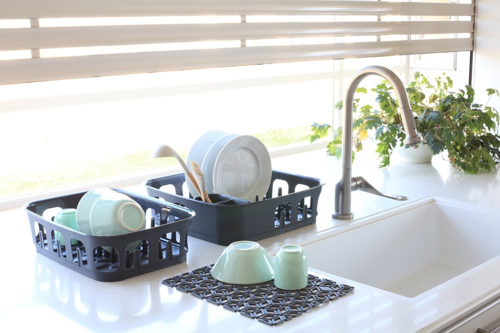 Het vaatdroogrek is gemaakt van polypropyleen, waardoor het product geen krassen maakt op de oppervlakken waarop het wordt geplaatst en niet wegglijdt.