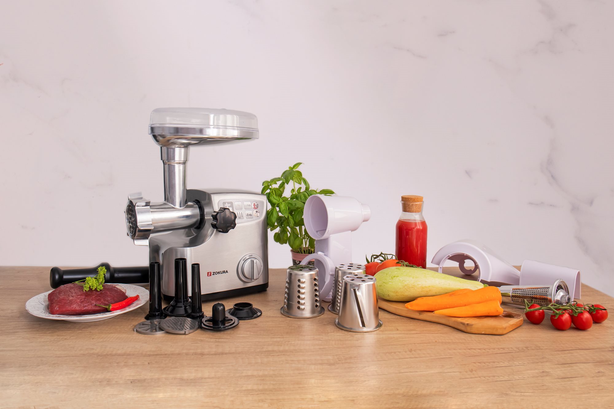 De vleesmolen heeft 2 snelheden en omgekeerde rotatiefunctie.