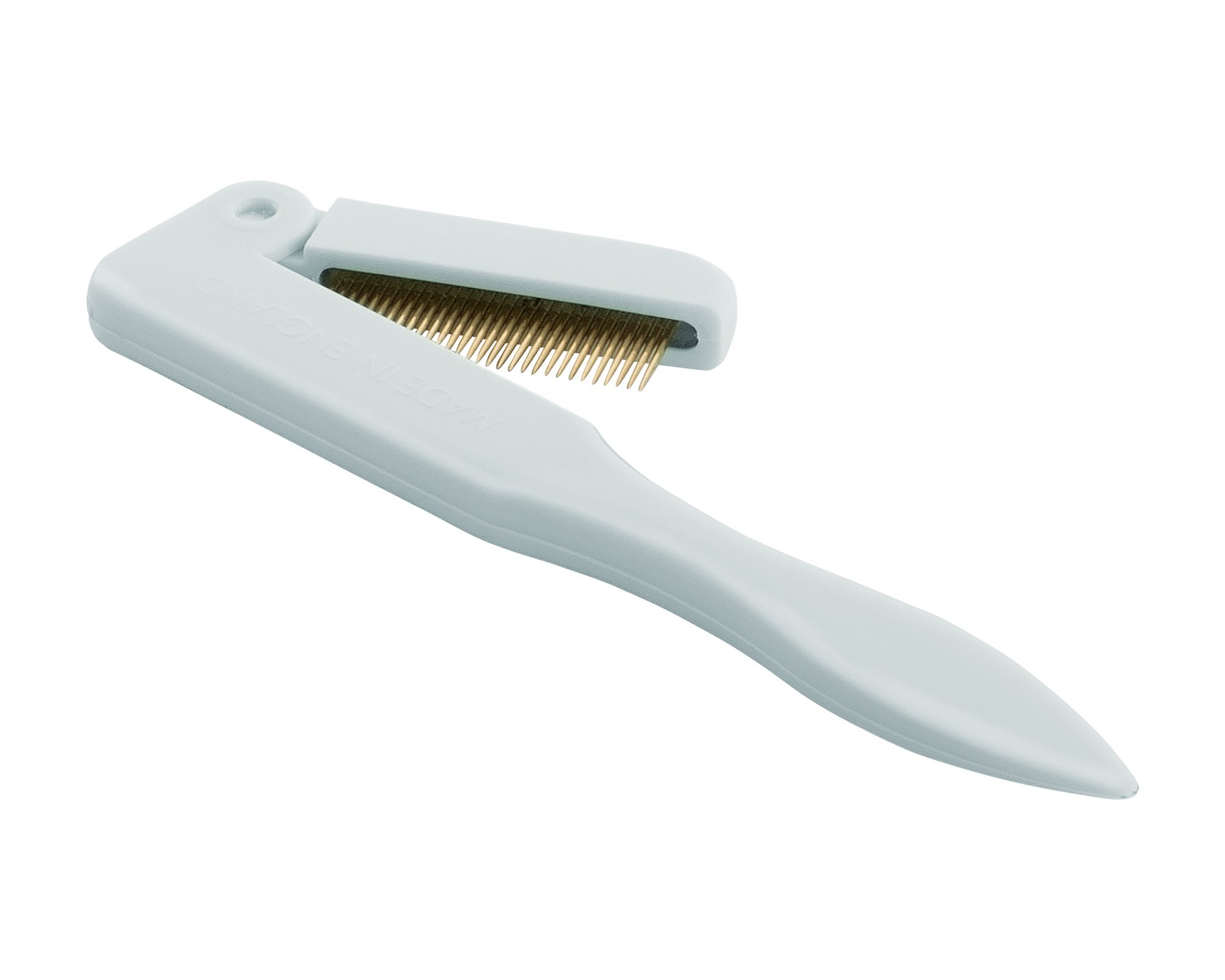 De Premium wimperkam met vergulde stalen tanden glijdt moeiteloos door de wimpers en verwijdert overtollige mascara. Deze kam scheidt en definieert de wimpers zodat ze er verzorgd en langer uitzien. De wimperkam is opvouwbaar om de tanden te beschermen tegen beschadiging en vervuiling.