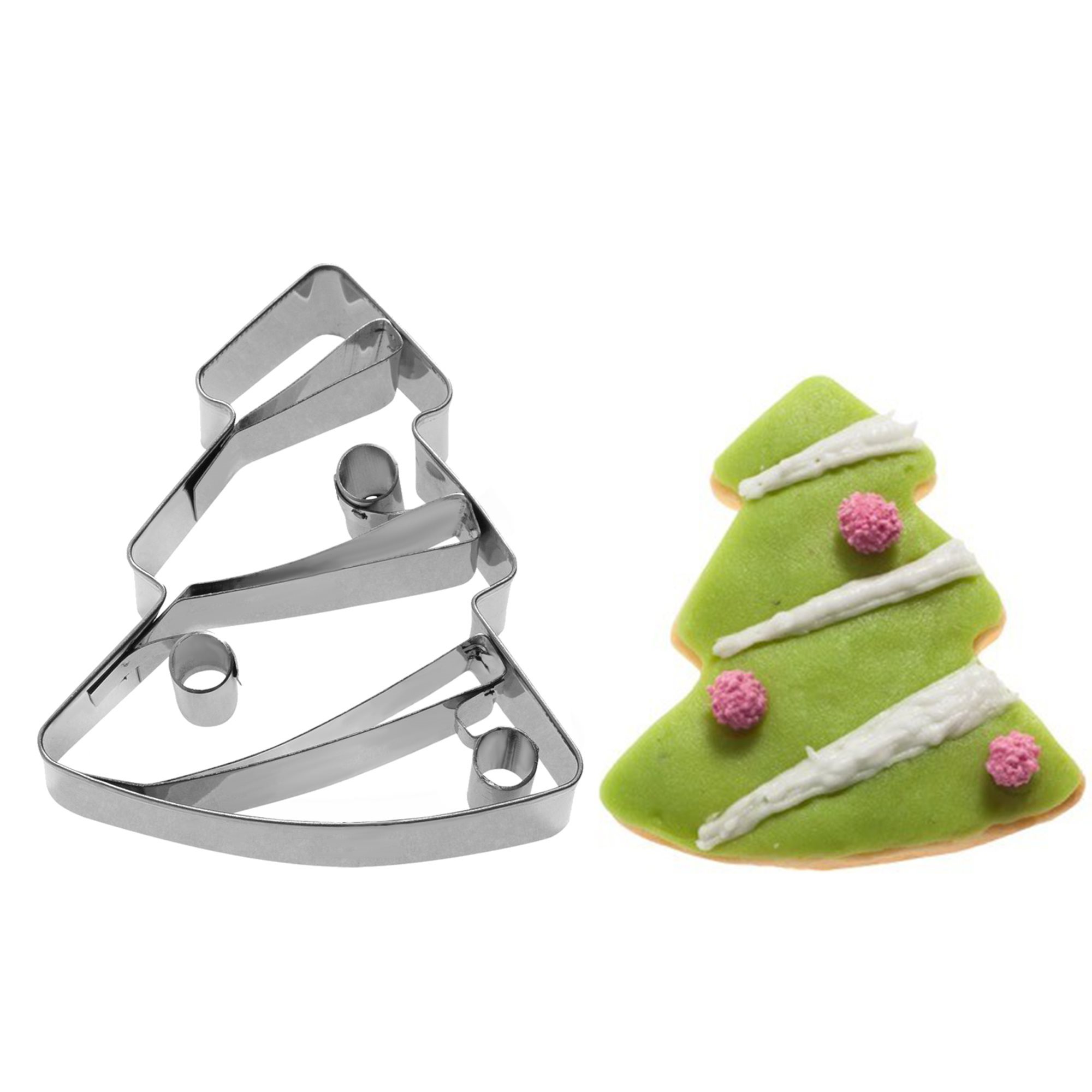 Kjekseskærer som også kan kutte deig, i form av et gran dekorert til jul, produsert av Westmark, størrelse 7 cm, laget av rustfritt stål.