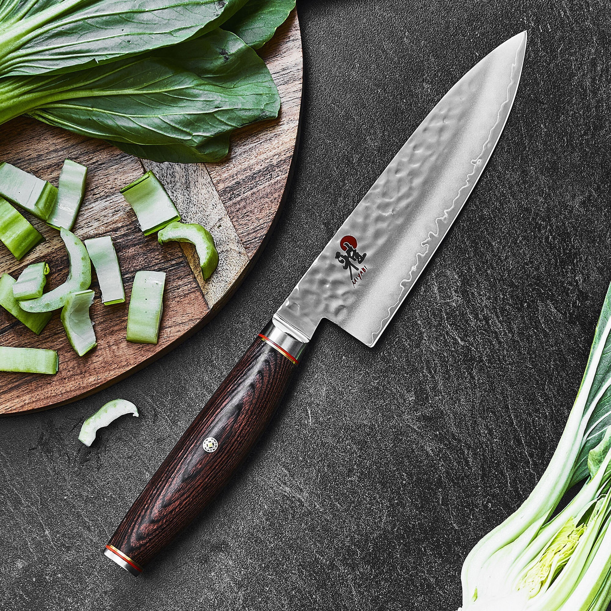 — A alça feita de madeira Pakka oferece estabilidade e equilíbrio perfeito, independentemente da técnica de corte utilizada.