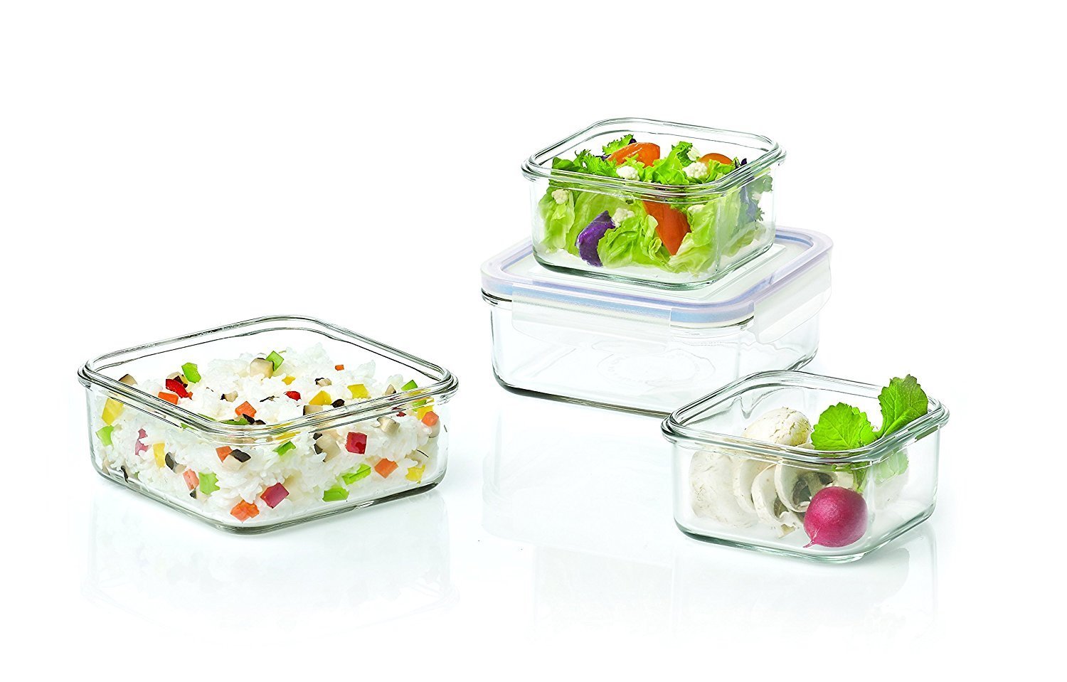Capacele din plastic prevazute cu o garnitura din silicon, permit obtinerea unei inchideri etanse, impiedicand varsarea lichidelor si pastrand valorile nutritive si prospetimea alimentelor un timp mai indelungat.