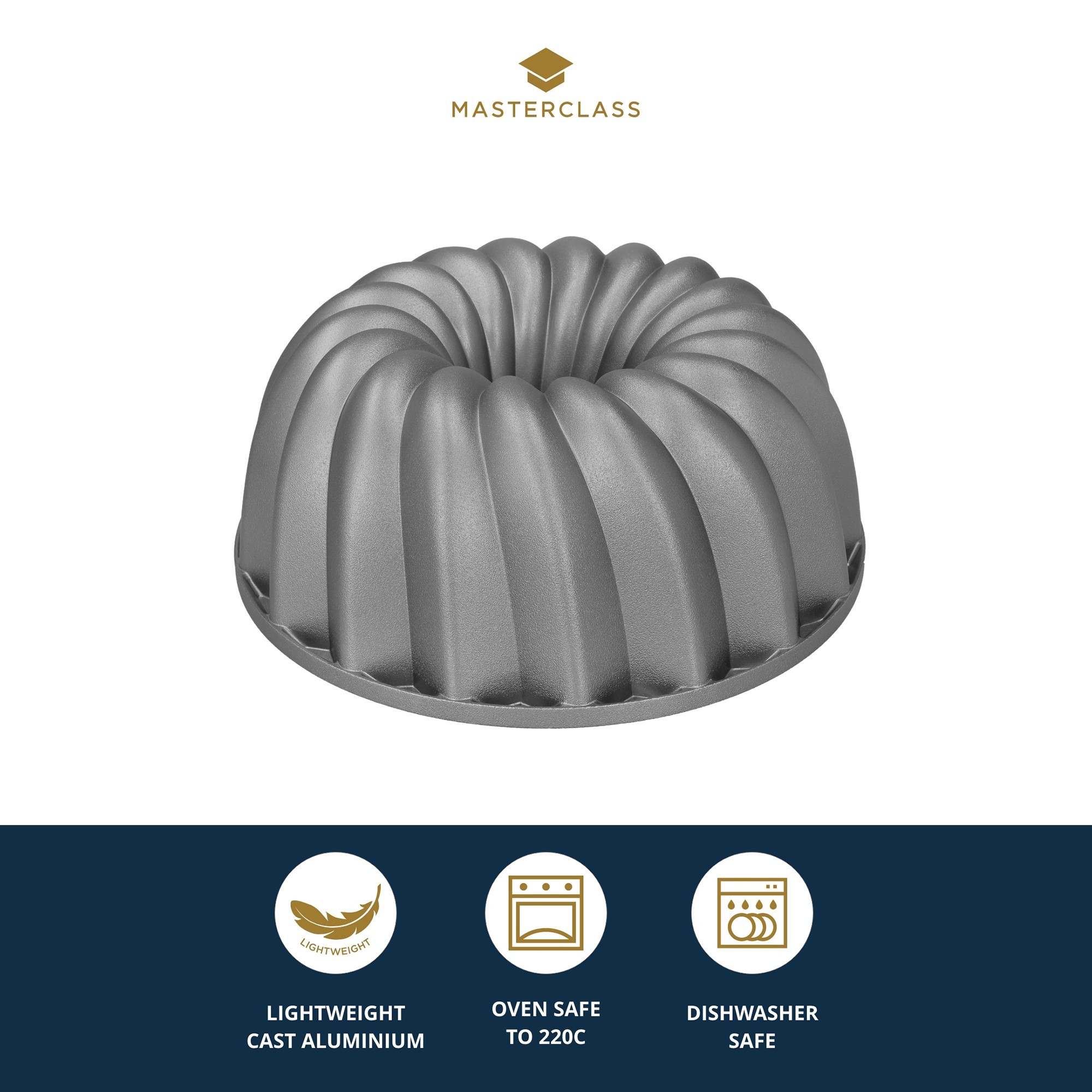 Den är tillverkad av gjuten aluminium och har en dubbel non-stick-beläggning på insidan. Denna räfflade kakform är en del av den prisbelönta Master Class kollektionen som garanterar långvarig användning.
